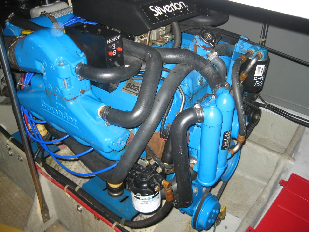 1994 Silverton 41 Motor Yacht. Very nice 41' aft cabin, freshwater boat. Powered by twin Crusader 502's at 425hp ea, with 810 hours of freshwater runtime. Kohler generator, 3 AC units, 2 staterooms each with their own bathroom, camper canvas and eisenglass (2 years old) windlass, electric davit for tender on hardtop, new appliances for kitchen, must see. Price Reduction, March 2025. Owner will be offering a 30 day warranty on both engines at time of delivery.