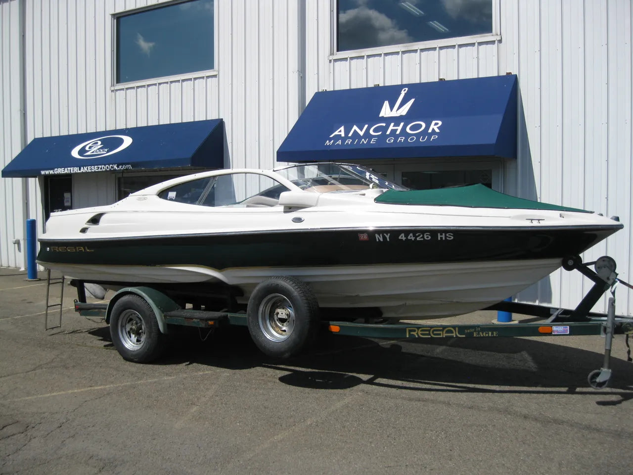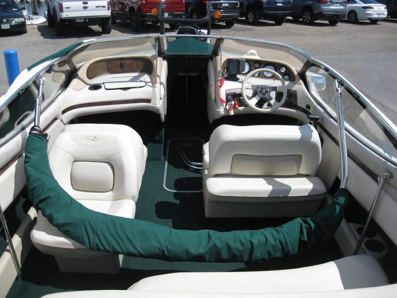 1997 Regal 2100 LSR. Great starter boat, with plenty of features. Recently serviced at Anchor Marine, and turnkey! Powered by a 5.0L Volvo V8 @ 220hp, plenty of power to pull skiers / tubes / wakeboards. New bow and cockpit covers, sun top, depth finder, large sunpad, back to back passenger lounger, double wide helm captains seat that has a flip backrest, bow seating area, and comes with a factory matched trailer.
