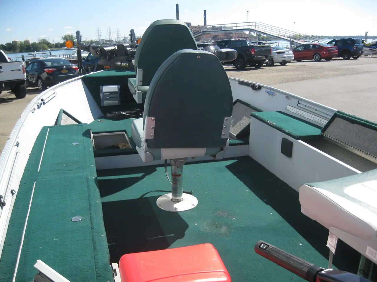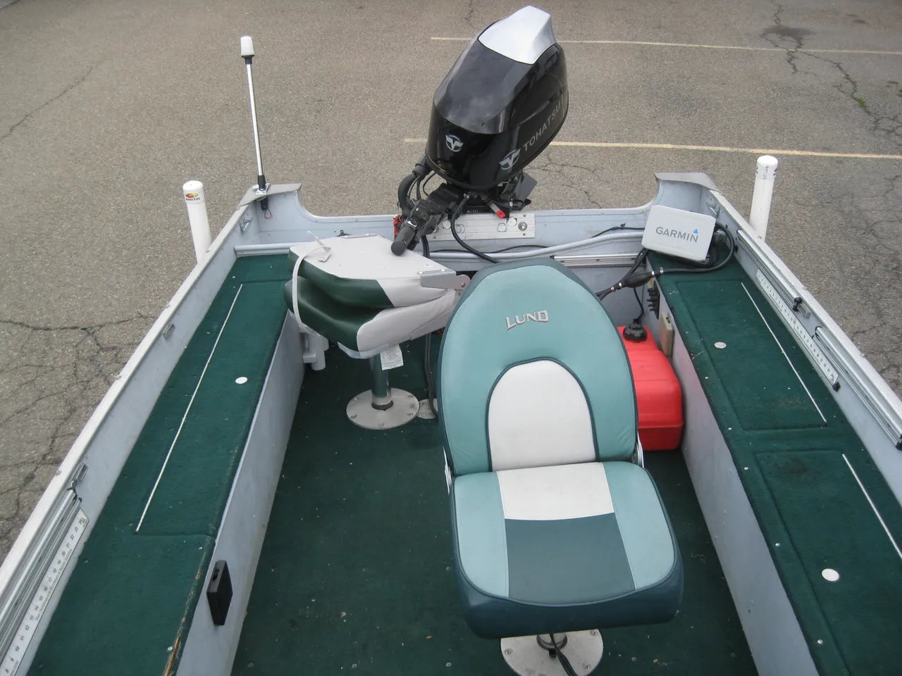 1999 Lund 1440 V Rebel Tiller. Great little 14' tiller, recently repowered with a brand new 2022 Tohatsu 40hp tiller w/ electric start and power trim and tilt. 3 fishing seats, MinnKota 55# Terrova, battery charger, Garmin color GPS / fishfinder, and trailer w/ load guides.