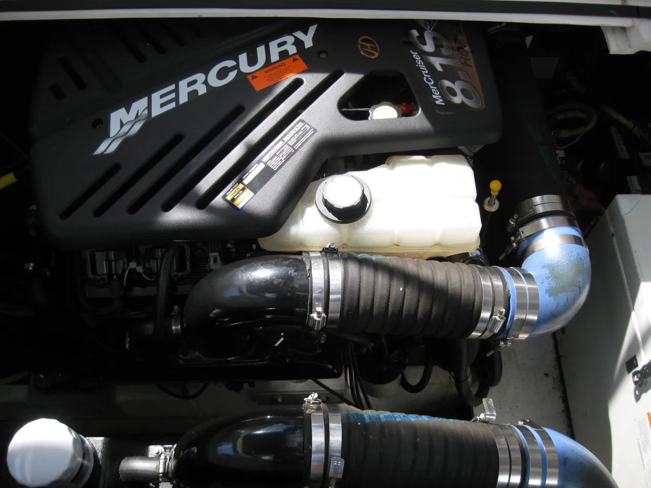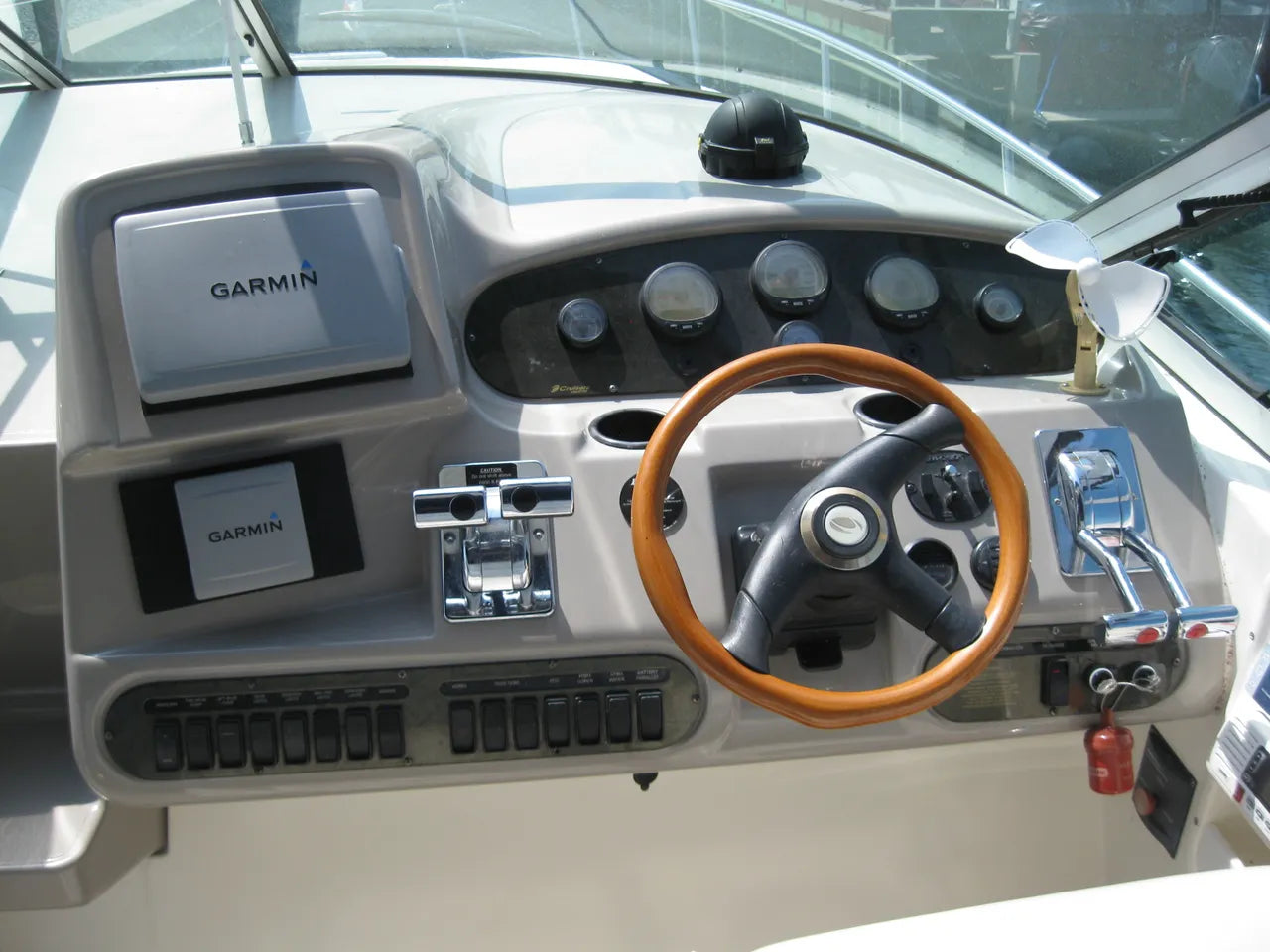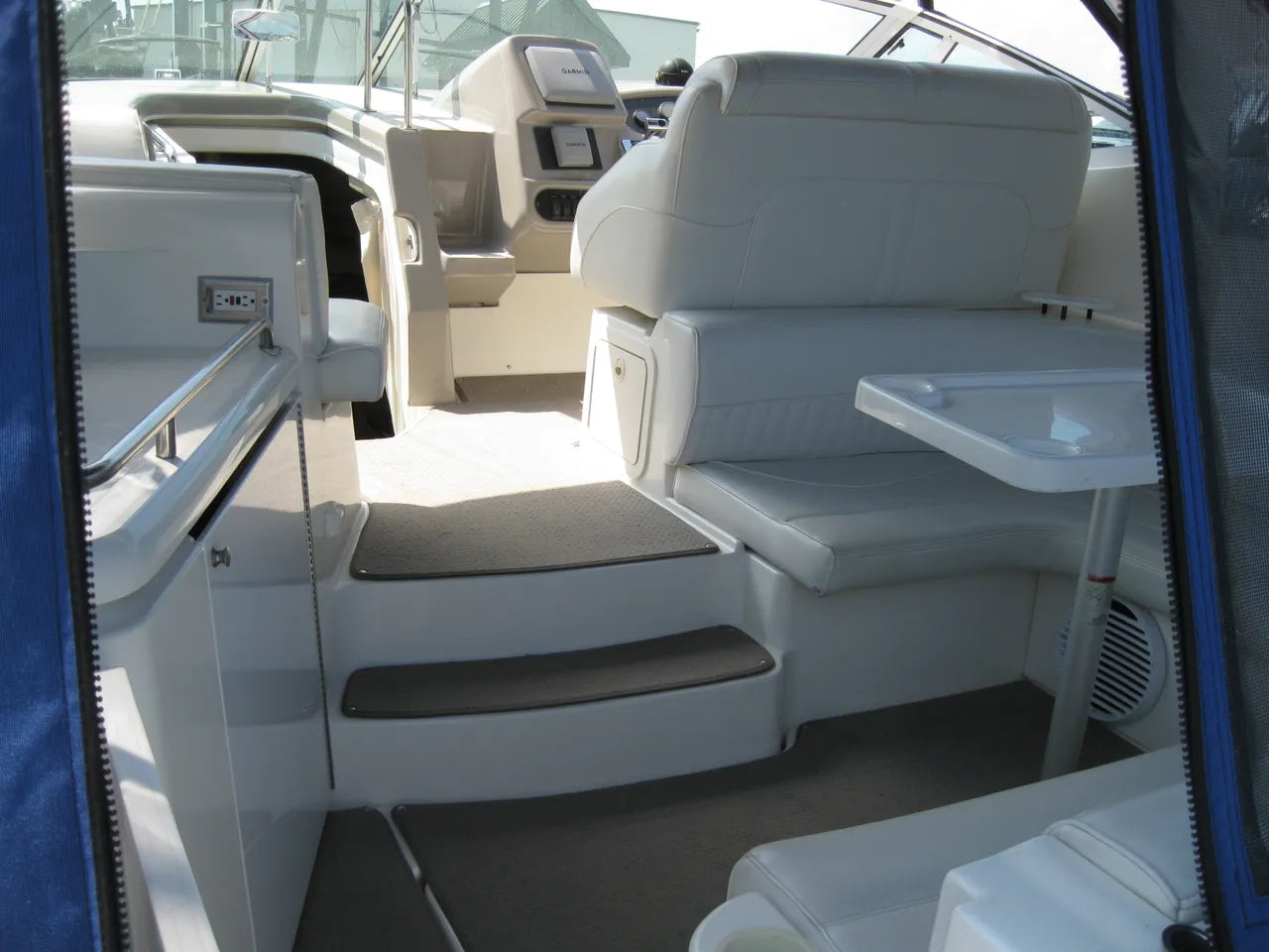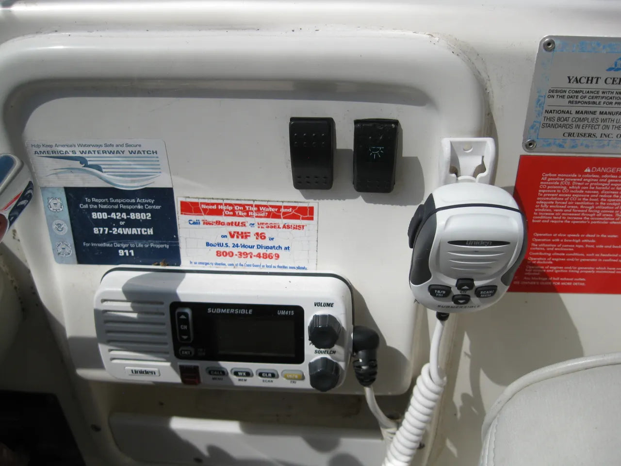2003 Cruisers 2470 Express. 100% Freshwater boat, extremely well cared for. Powered by twin Mercruiser 8.1 Horizon V Drives at 370hp each, with only 735hrs of freshwater runtime. Kohler 60hz generator with 210hrs. Large swim platform leads into a portside walkthrough that boasts cockpit fridge and sink, horseshoe group seating with large table, and passenger lounger. Double wide helm station w/ flip bolsters, Mercury Smartcraft gauges, Garmin GPSmap 5208 paired with GHC 10 autopilot, VHF radio, freshly updated canvas with screens. Cabin entry leads into portside kitchen with fridge, stovetop, and microwave, houesd by cherry wood cabinets, full bathroom with individual shower stall, large wood kitchen dinette table, spacious aft cabin, and master berth with TV, and large closet space. Anchor windlass and remote spotlight. Must see to appreciate.