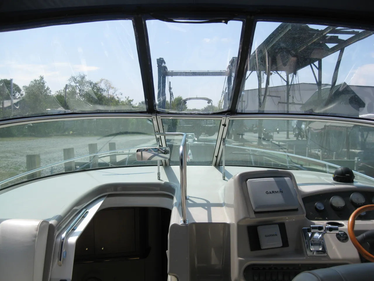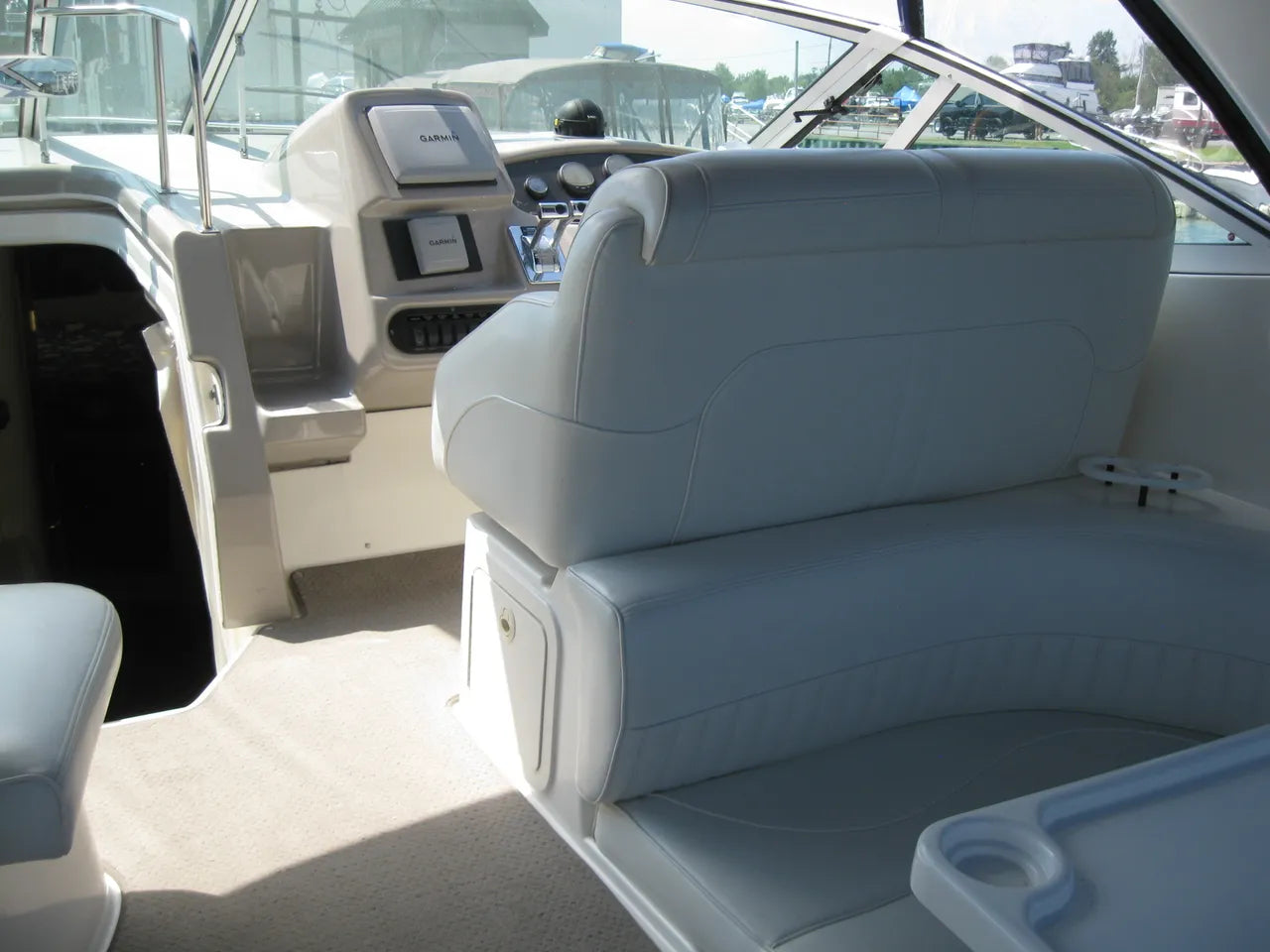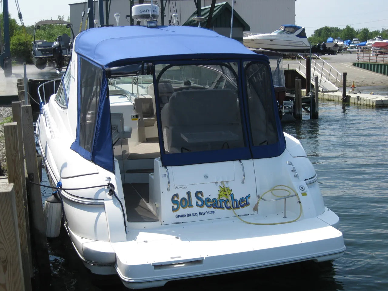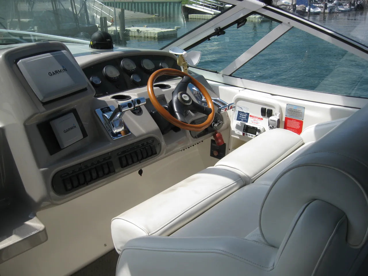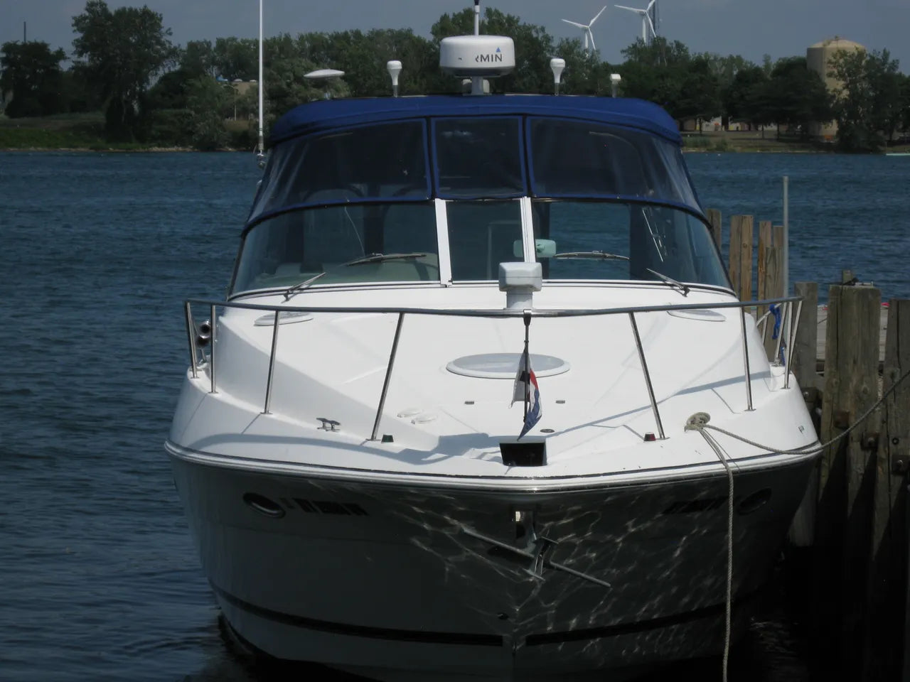 2003 Cruisers 2470 Express. 100% Freshwater boat, extremely well cared for. Powered by twin Mercruiser 8.1 Horizon V Drives at 370hp each, with only 735hrs of freshwater runtime. Kohler 60hz generator with 210hrs. Large swim platform leads into a portside walkthrough that boasts cockpit fridge and sink, horseshoe group seating with large table, and passenger lounger. Double wide helm station w/ flip bolsters, Mercury Smartcraft gauges, Garmin GPSmap 5208 paired with GHC 10 autopilot, VHF radio, freshly updated canvas with screens. Cabin entry leads into portside kitchen with fridge, stovetop, and microwave, houesd by cherry wood cabinets, full bathroom with individual shower stall, large wood kitchen dinette table, spacious aft cabin, and master berth with TV, and large closet space. Anchor windlass and remote spotlight. Must see to appreciate.