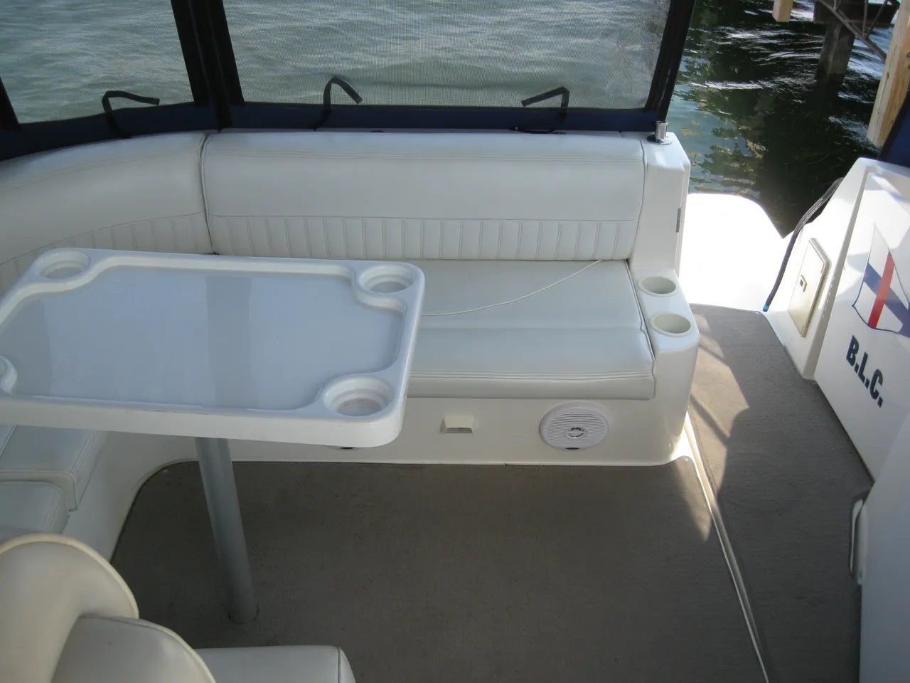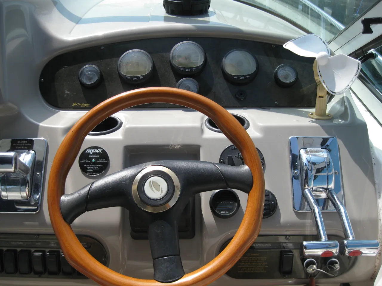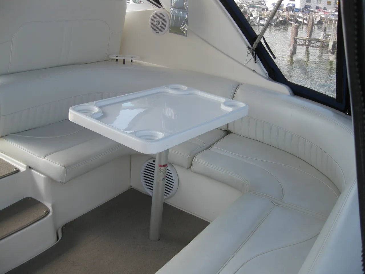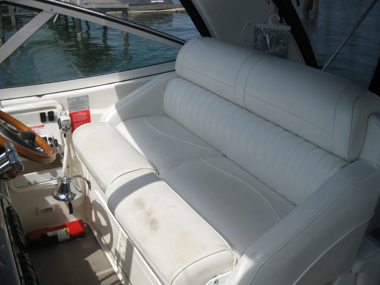 2003 Cruisers 2470 Express. 100% Freshwater boat, extremely well cared for. Powered by twin Mercruiser 8.1 Horizon V Drives at 370hp each, with only 735hrs of freshwater runtime. Kohler 60hz generator with 210hrs. Large swim platform leads into a portside walkthrough that boasts cockpit fridge and sink, horseshoe group seating with large table, and passenger lounger. Double wide helm station w/ flip bolsters, Mercury Smartcraft gauges, Garmin GPSmap 5208 paired with GHC 10 autopilot, VHF radio, freshly updated canvas with screens. Cabin entry leads into portside kitchen with fridge, stovetop, and microwave, houesd by cherry wood cabinets, full bathroom with individual shower stall, large wood kitchen dinette table, spacious aft cabin, and master berth with TV, and large closet space. Anchor windlass and remote spotlight. Must see to appreciate.