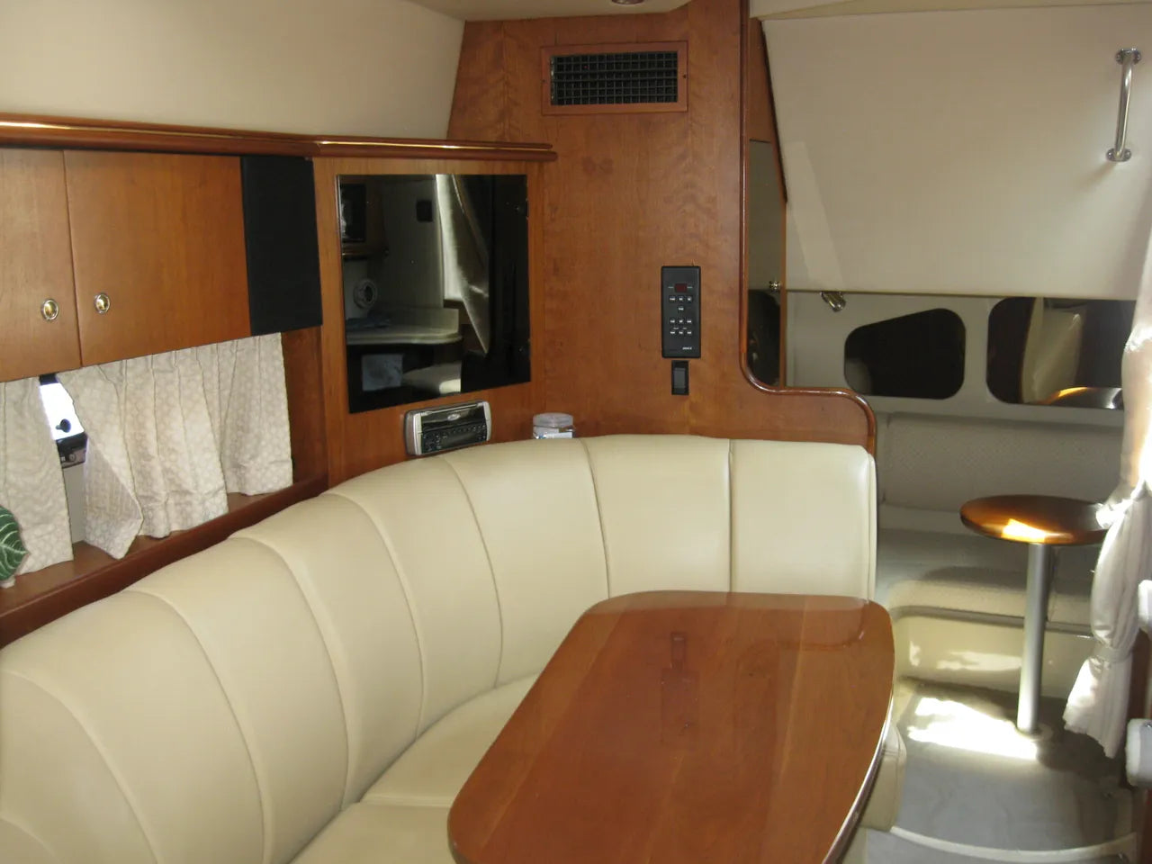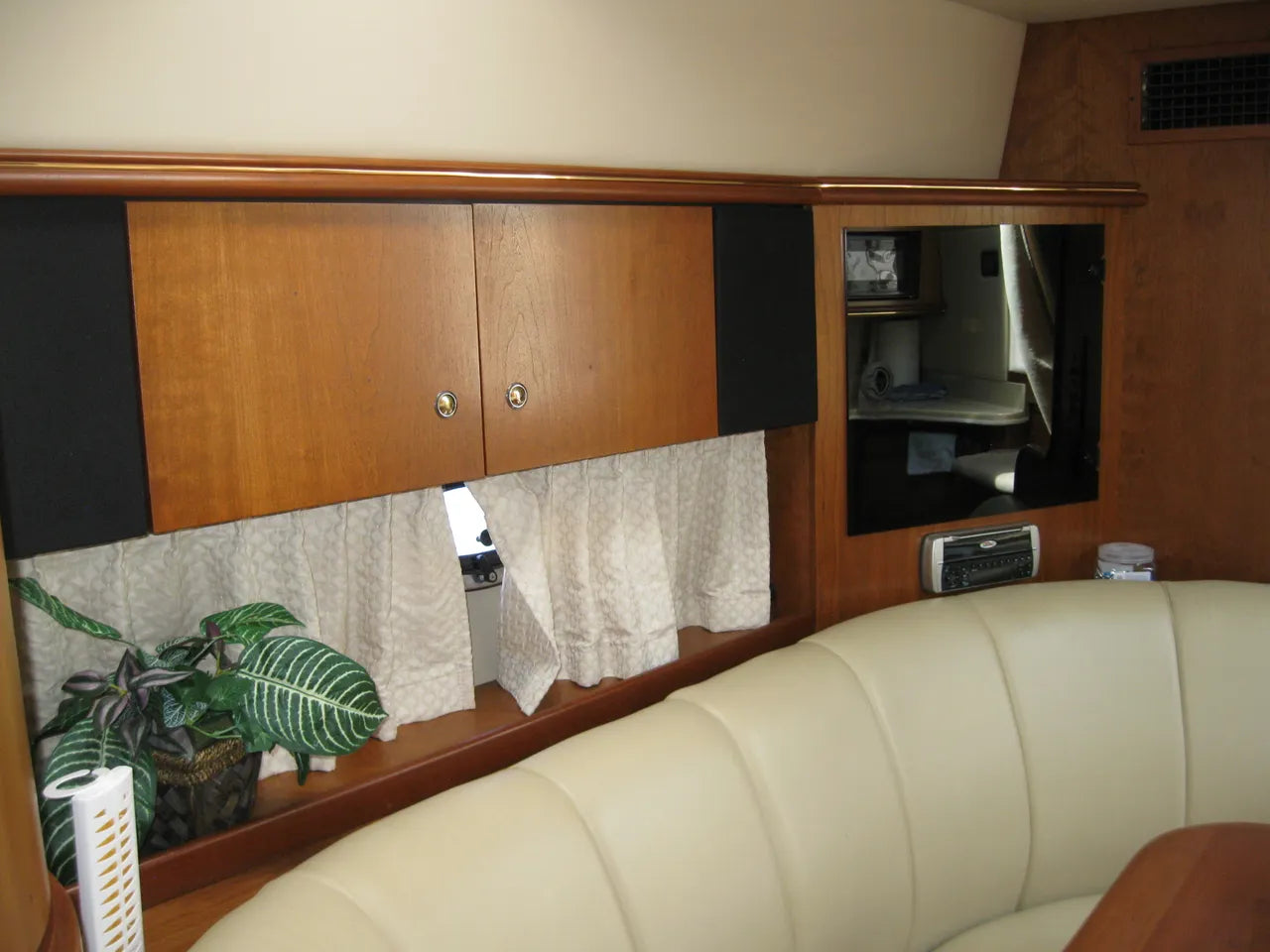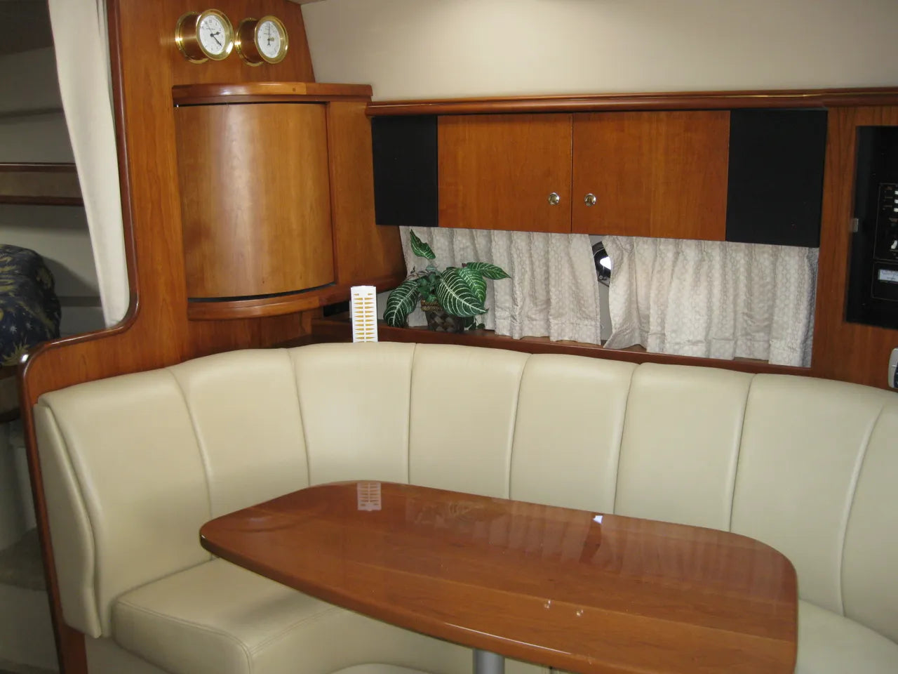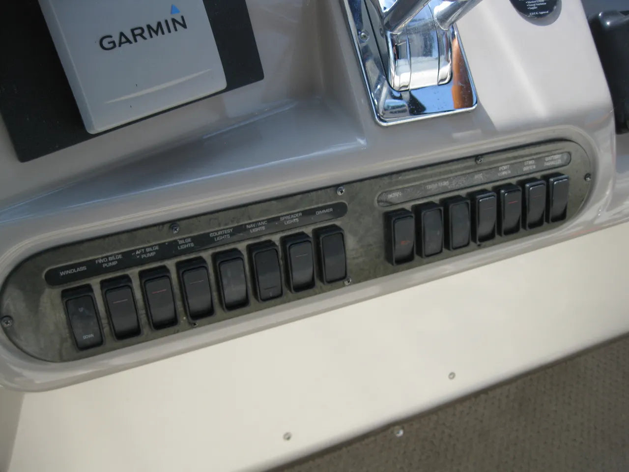 2003 Cruisers 2470 Express. 100% Freshwater boat, extremely well cared for. Powered by twin Mercruiser 8.1 Horizon V Drives at 370hp each, with only 735hrs of freshwater runtime. Kohler 60hz generator with 210hrs. Large swim platform leads into a portside walkthrough that boasts cockpit fridge and sink, horseshoe group seating with large table, and passenger lounger. Double wide helm station w/ flip bolsters, Mercury Smartcraft gauges, Garmin GPSmap 5208 paired with GHC 10 autopilot, VHF radio, freshly updated canvas with screens. Cabin entry leads into portside kitchen with fridge, stovetop, and microwave, houesd by cherry wood cabinets, full bathroom with individual shower stall, large wood kitchen dinette table, spacious aft cabin, and master berth with TV, and large closet space. Anchor windlass and remote spotlight. Must see to appreciate.