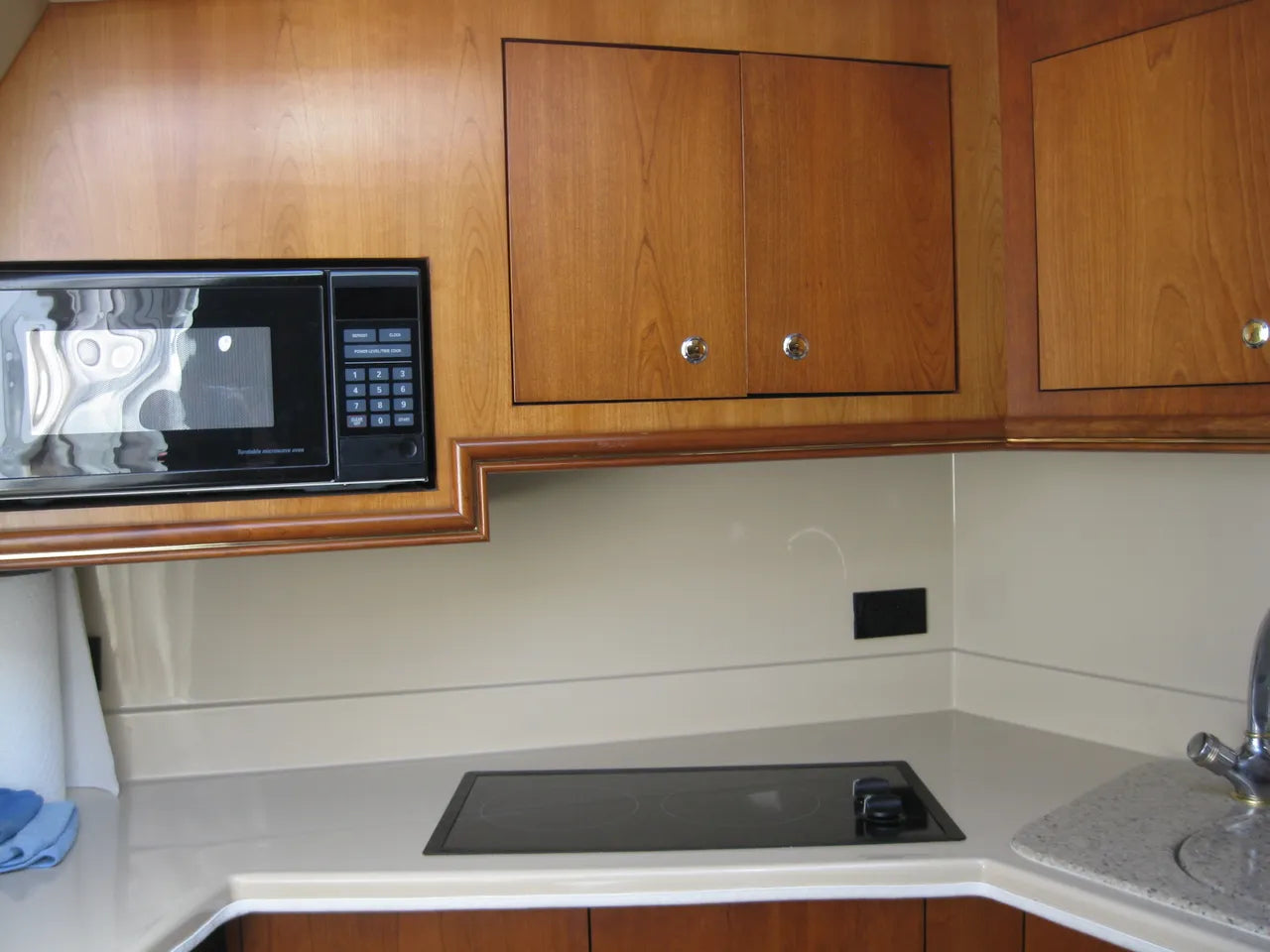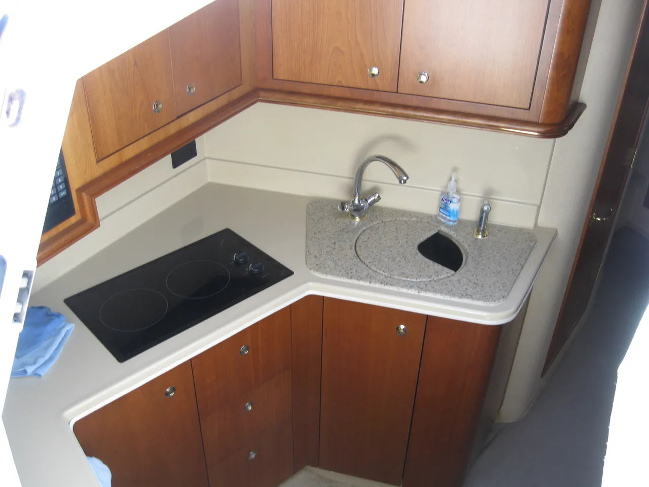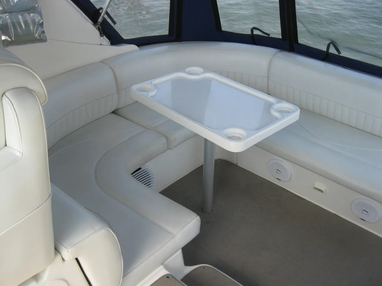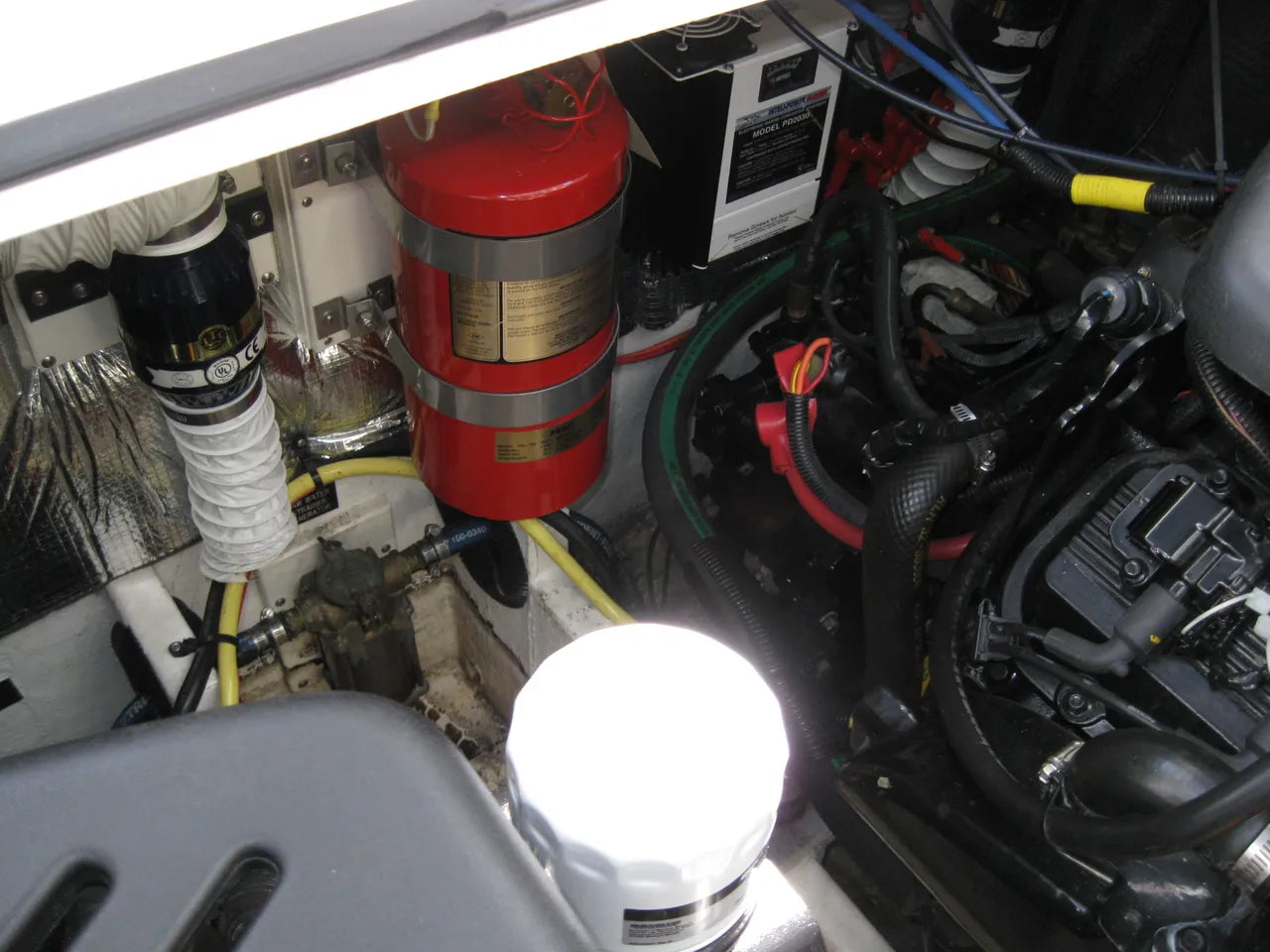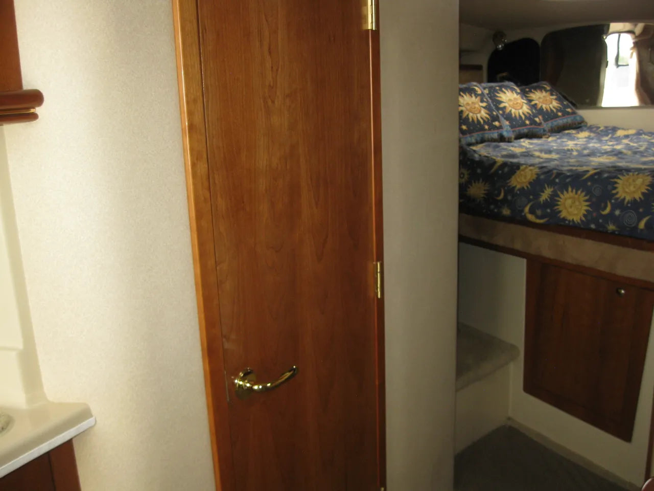 2003 Cruisers 2470 Express. 100% Freshwater boat, extremely well cared for. Powered by twin Mercruiser 8.1 Horizon V Drives at 370hp each, with only 735hrs of freshwater runtime. Kohler 60hz generator with 210hrs. Large swim platform leads into a portside walkthrough that boasts cockpit fridge and sink, horseshoe group seating with large table, and passenger lounger. Double wide helm station w/ flip bolsters, Mercury Smartcraft gauges, Garmin GPSmap 5208 paired with GHC 10 autopilot, VHF radio, freshly updated canvas with screens. Cabin entry leads into portside kitchen with fridge, stovetop, and microwave, houesd by cherry wood cabinets, full bathroom with individual shower stall, large wood kitchen dinette table, spacious aft cabin, and master berth with TV, and large closet space. Anchor windlass and remote spotlight. Must see to appreciate.