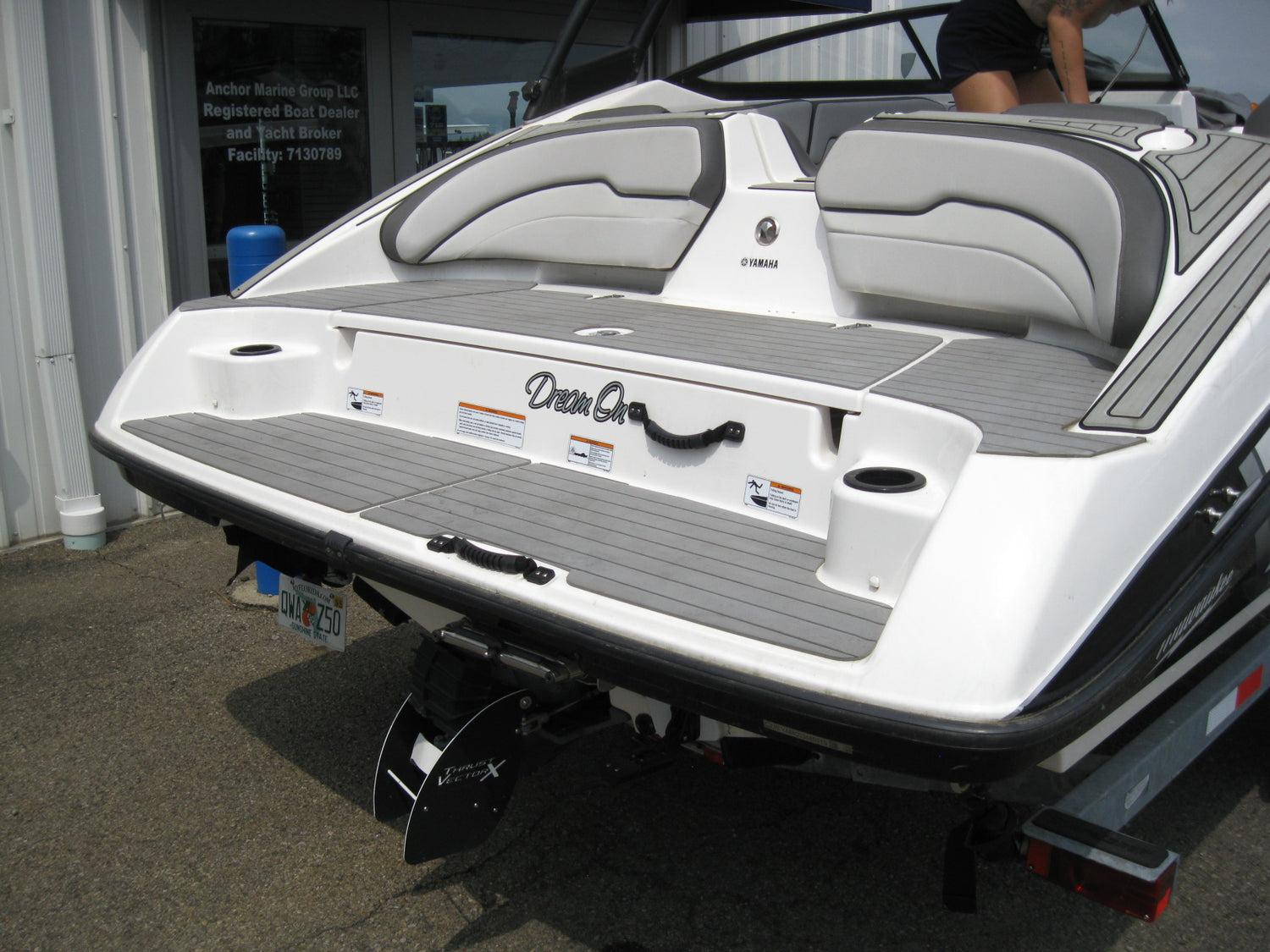 2019 Yamaha AR 190 Jet Boat. 1.8L High Output 180hp jet. Sea Dek platform inlay w/ rear facing seats, snap out cockpit carpet, wakeboard tower w/ integrated bimini top, Clarion stereo w/ tower can speakers, dual battery setup, factory mooring cover, and comes with a galvanized trailer.