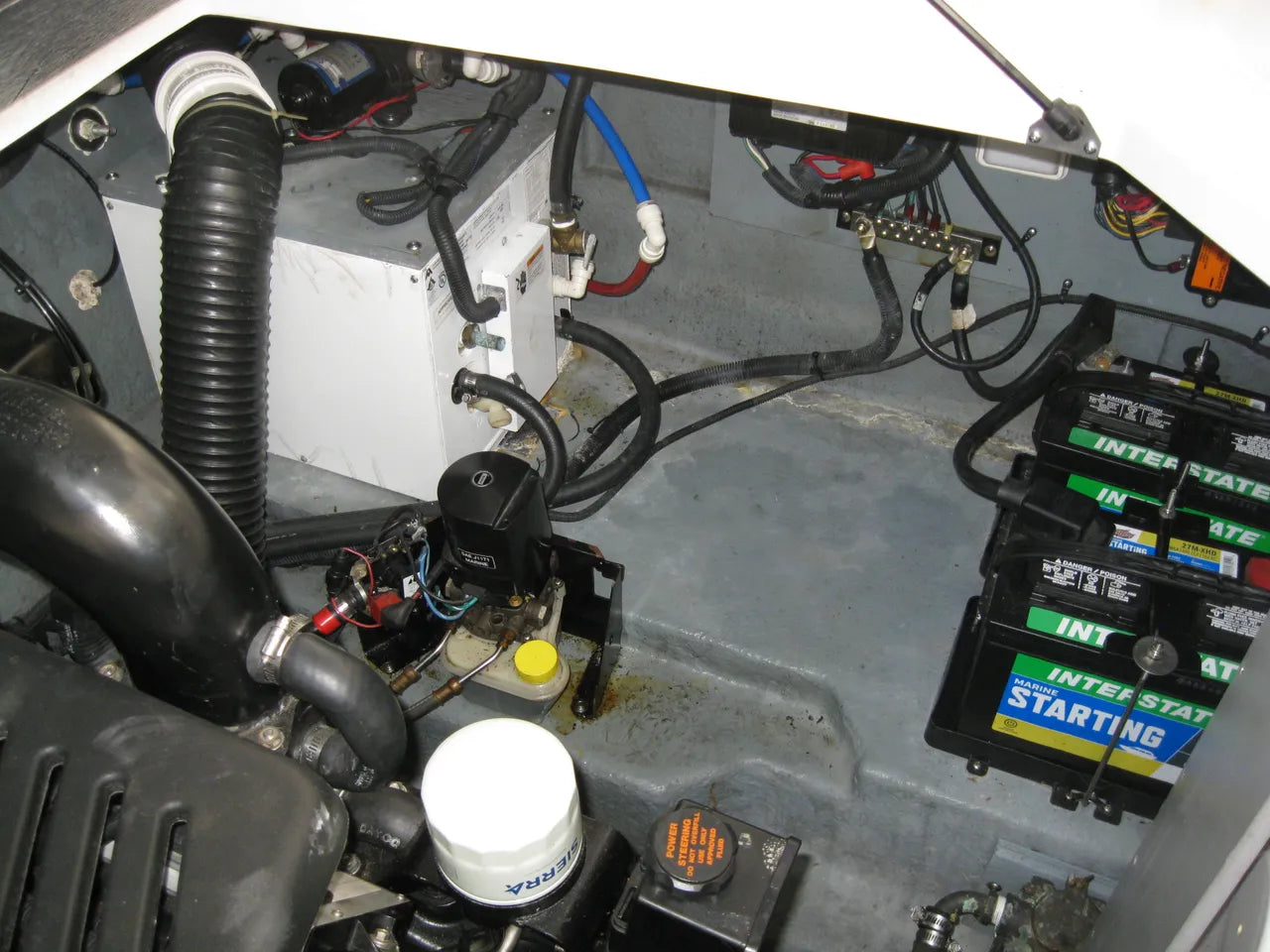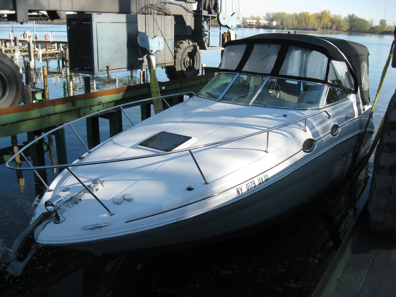 2002 Sea Ray 280 Sundancer. Popular 28' express cruiser, powered by a Mercruiser 496 MAG 375hp w/ Bravo III Drive. Freshwater boat, freshly bottom painted. Large extended swim platform leads into a open cockpit layout w/ flip away aft bench seat, cockpit galley w/ freshwater sink, passenger lounger, and helm station w/ flip up bolster seat. Sea Ray touchpad dash switches, digital depth finder, VHF radio, cockpit table, cabin entry leads down to a dual dinette, cherry cabinets, air conditioning w/ reverse cycle heat, kitchenette w/ stovetop, microwave, sink and fridge, stand up head w/ shower, aft cabin, anchor windlass, remote spotlight, trim tabs, radar arch w/ integrated camper canvas w/ screens (new in 2025)