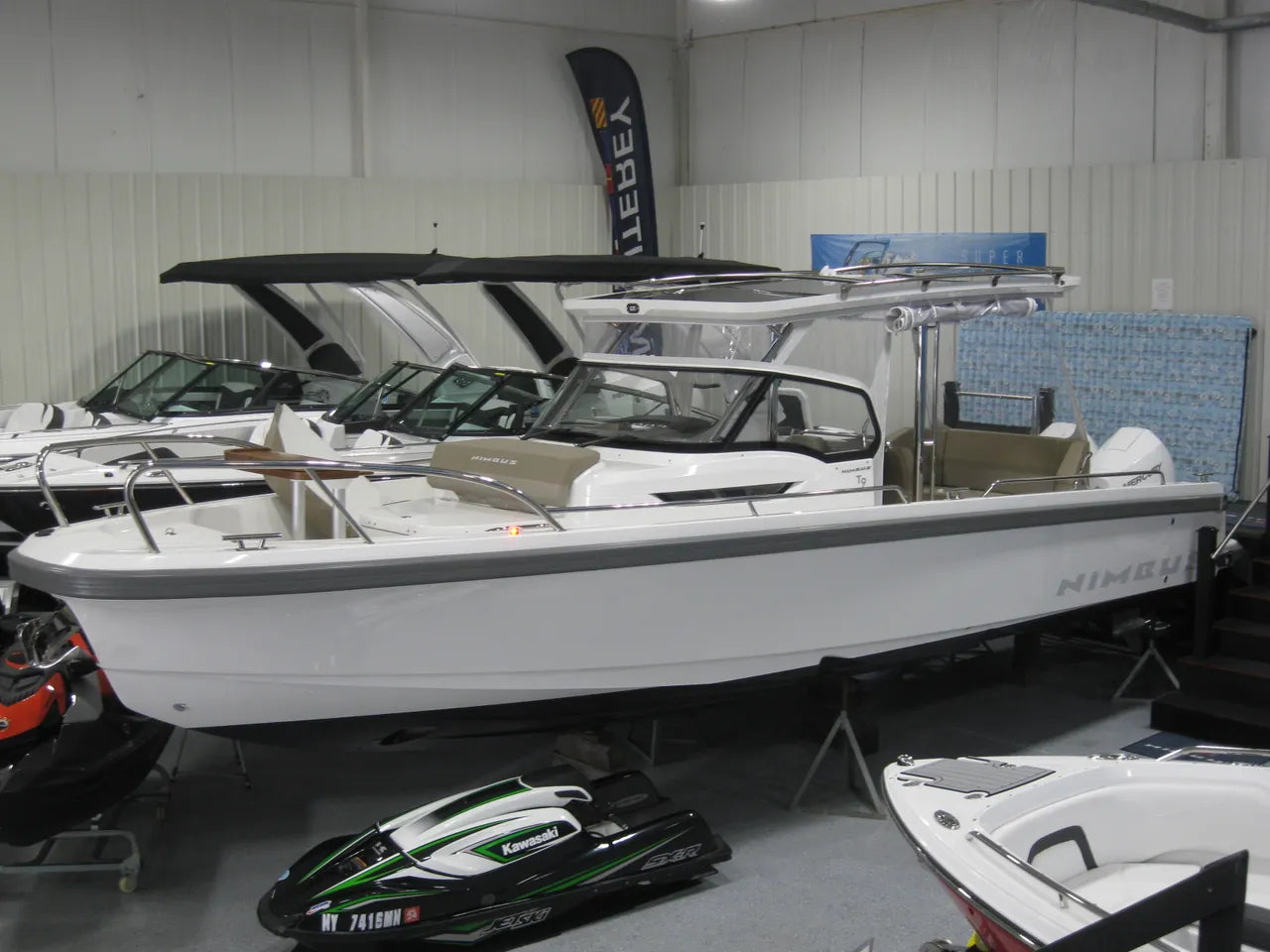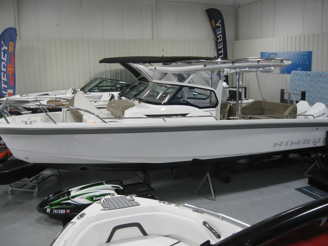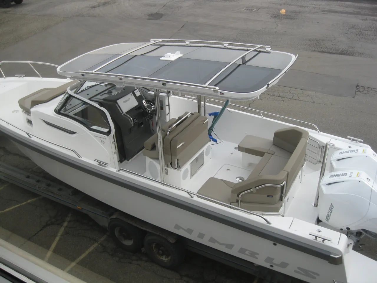 2024 Nimbus T9. Anchor Marine is proud to welcome the Nimbus lineup of boats into our showrooms. The finest build quality out of Sweden, this boat does it all! Powered by twin Mercury 225hp V6 outboards w/ Mercury VesselView mobile and first mate, T-top with enclosure canvas, Cockpit fridge and icemaker, bow thruster, Zipwake dynamic trim control system, windless, ski tow pylon, how water system, shorepower, underwater lights, roof racks, stern gates, Hifi high end stereo pkg, Simrad NSS EVO 3s 16" screen w/ xSoniz Bronze dual imaging, autopilot, HALO Radar w/ Precision 9 compass, bottom paint, and so much more. Stop in to see this extremely versatile boat only at Anchor Marine.