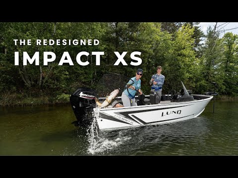 2025 Lund 1875 Impact XS Sport. Popular 18'10" fishboat powered by a Murcury 150 Pro XS 4 stroke with Hydraulic tilt steering. Full vinyl flooring, gunmetal w/ black accents, red raised logos, bow cargo nets, under console drawers port and starboard, sport top, phone charger, top hider, travel cover, and factory trailer.