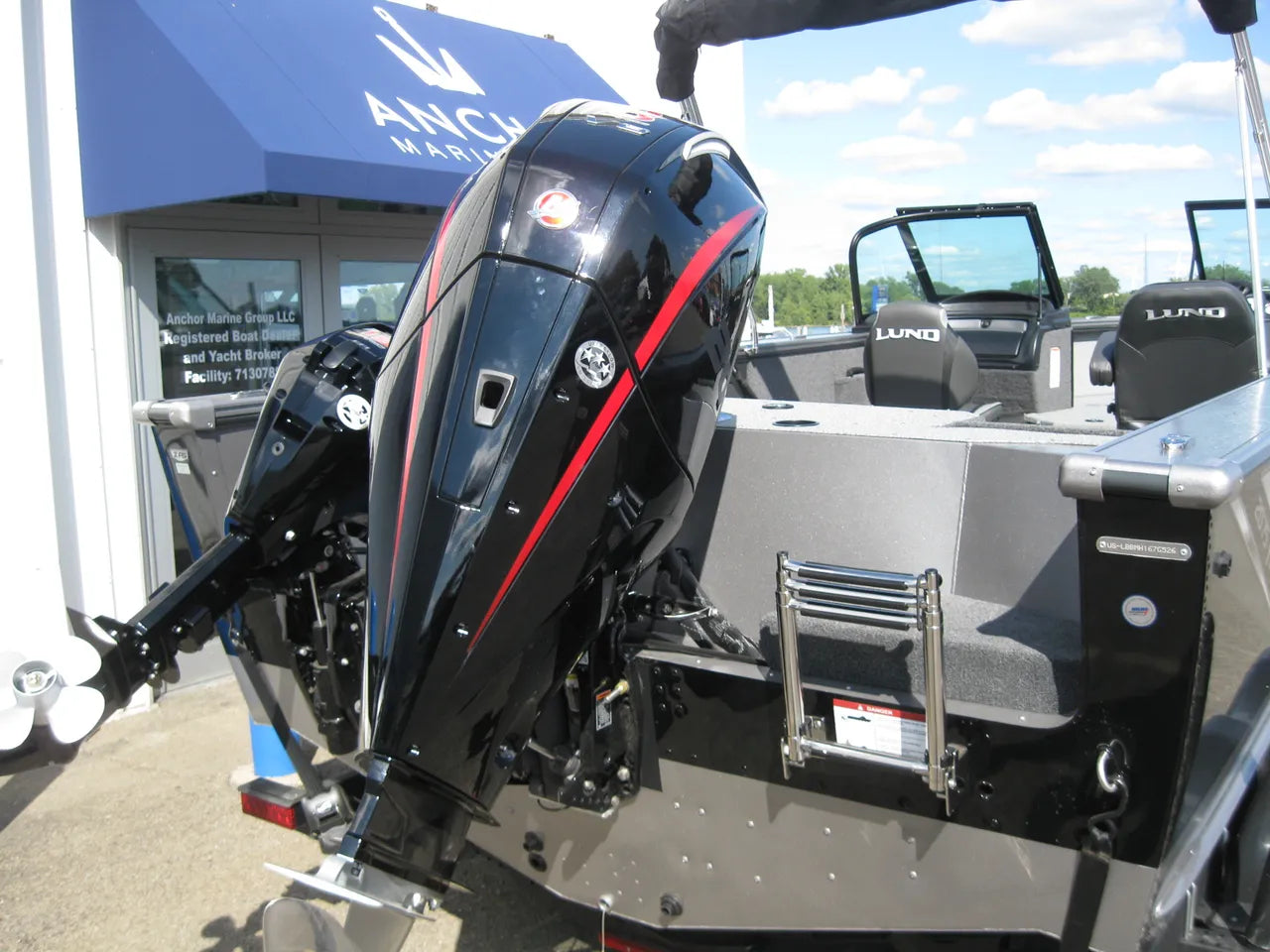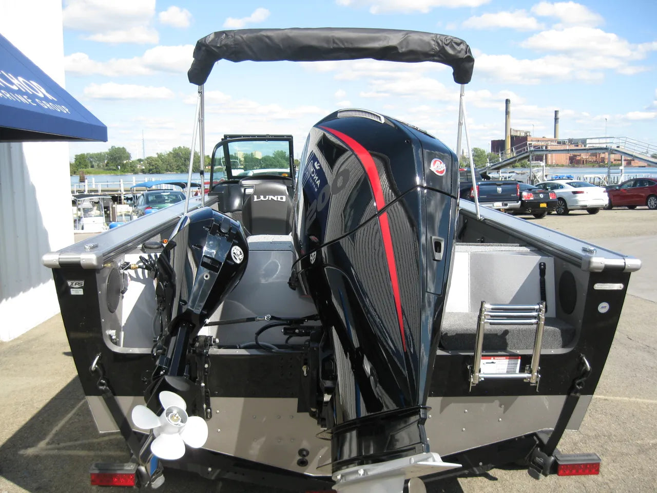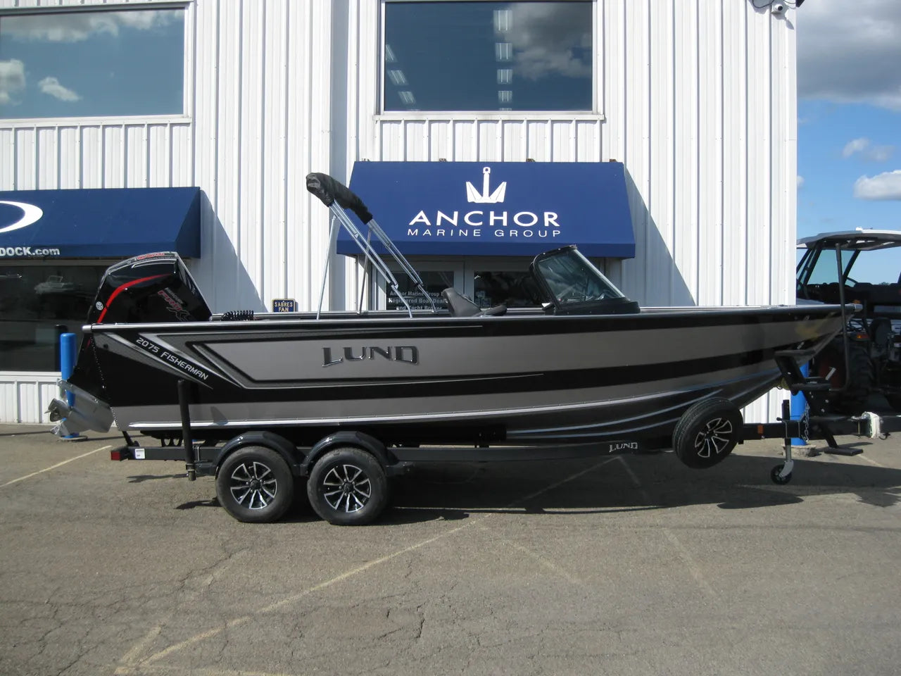 2026 Lund 275 Fisherman. The ultimate in a deep trolling rig! This refreshed 2075 Fisherman is powered by a Mercury 200hp Pro XS w/ DTS digital throttle and shift, and a Mercury 15hp EFI kicker. Full vinyl flooring, black metallic sides w/ silver stone accents, black raised logos, hydraulic tilt steering, stainless steel prop, fishing / trolling package includes port rod tues, Lund ruler, lower rod locker tubes, and lockable side locker doors, washdown system, helm suspension pilot chair, sport top w/ curtain, 4 step boarding ladder w/ platform, bow trailer ladder w/ handrail, load guides, and spare tire.