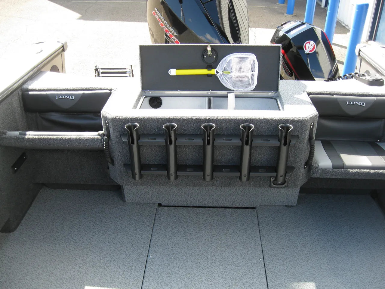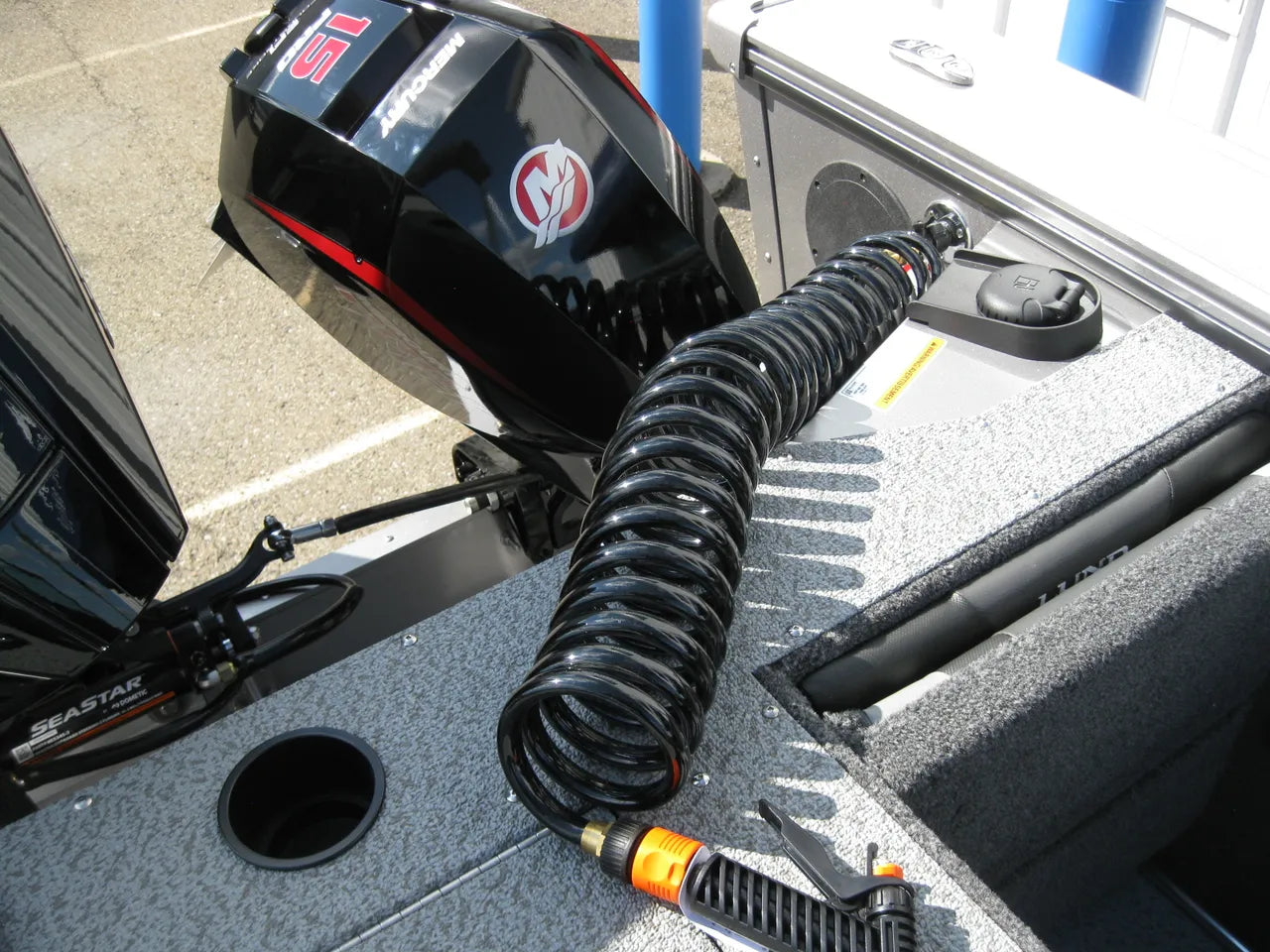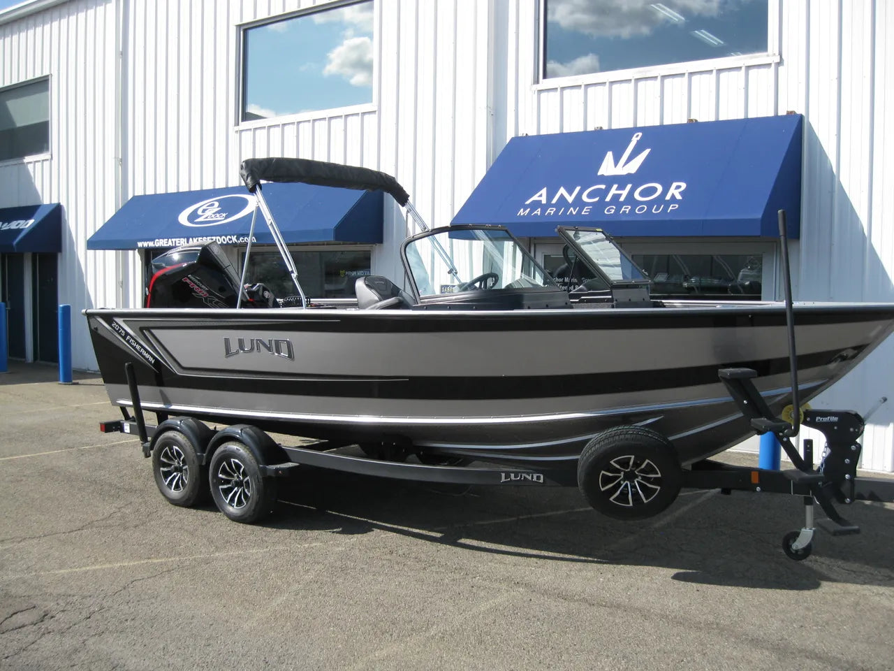 2026 Lund 275 Fisherman. The ultimate in a deep trolling rig! This refreshed 2075 Fisherman is powered by a Mercury 200hp Pro XS w/ DTS digital throttle and shift, and a Mercury 15hp EFI kicker. Full vinyl flooring, black metallic sides w/ silver stone accents, black raised logos, hydraulic tilt steering, stainless steel prop, fishing / trolling package includes port rod tues, Lund ruler, lower rod locker tubes, and lockable side locker doors, washdown system, helm suspension pilot chair, sport top w/ curtain, 4 step boarding ladder w/ platform, bow trailer ladder w/ handrail, load guides, and spare tire.