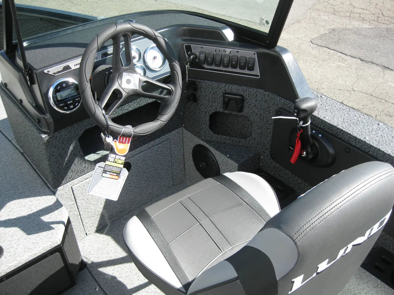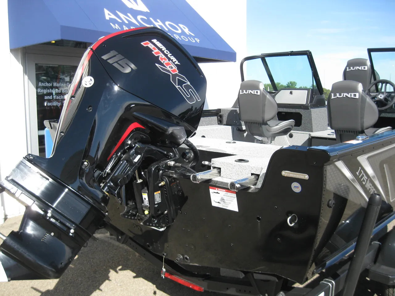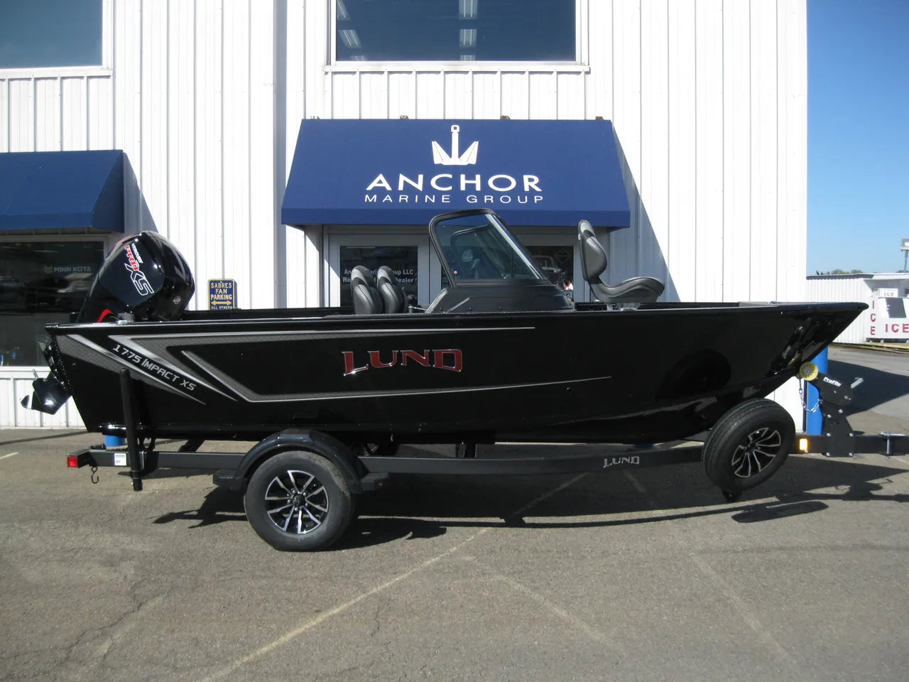 2026 Lund 1775 Impact XS. Redesigned for 2026, the all new 1775 Impact XS packs a punch. Full vinyl flooring, black metallic hullside w/ red raised logos, Mecury 115 Pro XS 4 stroke, aft jump seats, 2 livewells, on the go rod storage port and starboard, 3 pro ride seats, under console drawer storage port and starboard, bow cargo nets, helm seat slider, tilt wheel, bluetooth stereo, kicker fuel line, full travel cover, and factory trailer w/ load guides and spare tire.