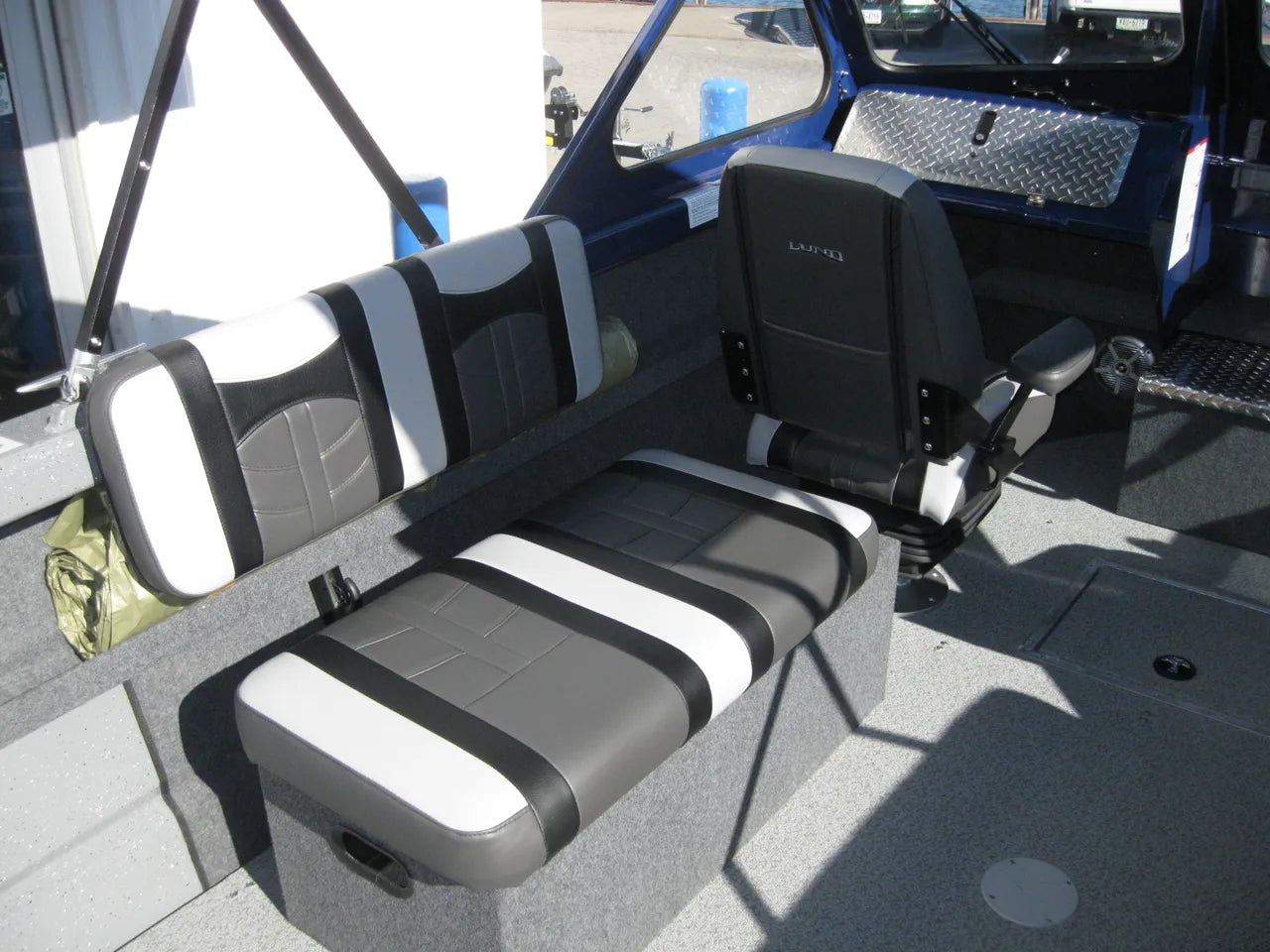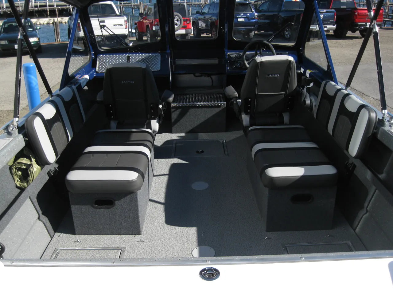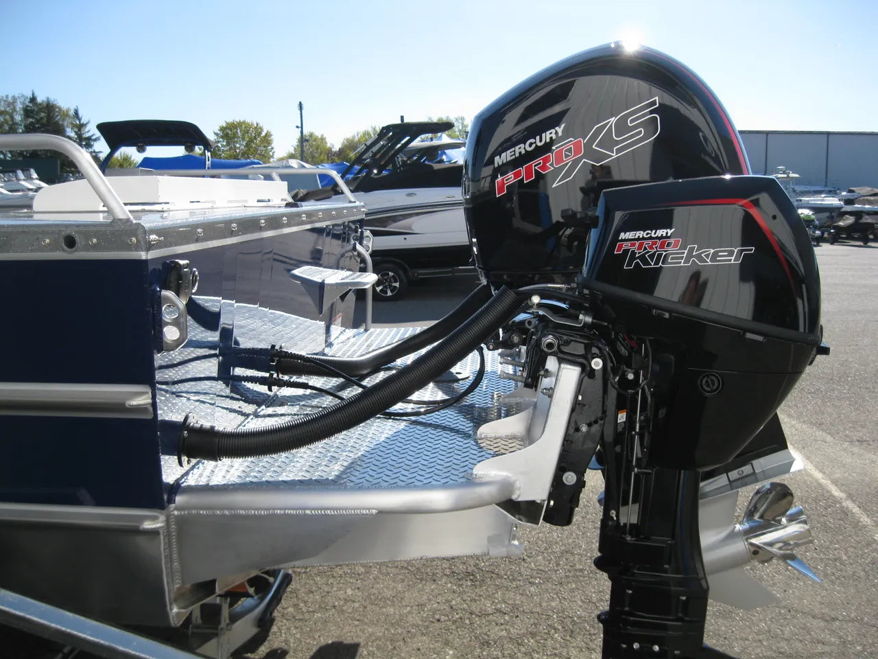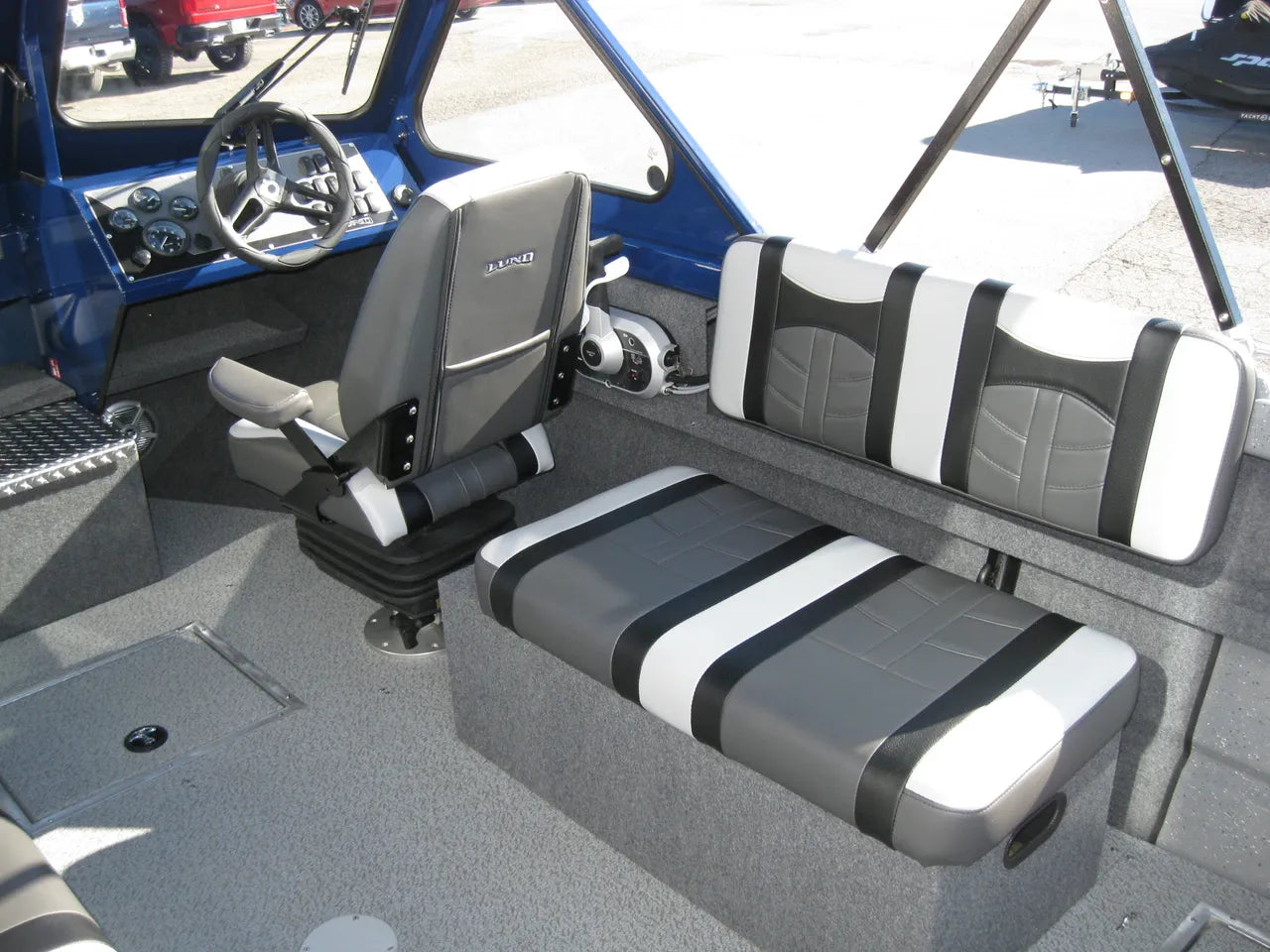2026 Lund 185 HG. The all new Heavy Gauge is here, perfect big water fish boat. The 185 HG is powered by a Mercury 150 Pro XS 4 stroke paired with a 9.9 EFI Pro Kicker equipped with tie bar and remote, full vinyl flooring, dual smooth move seats w/ adjustable armrests, new Navy blue hullsides w/ chrome raised logos, 6" stern rails w/ welded downrigger mounting pads port and starboard, LED docking lights, dual automatic bilge pumps, raw water washdown, sport top that connects to windshield with side isinglass wings and stern cover, and comes complete w/ an EZ Loader tandem galvanized trailer w/ spare tire and load guides.
