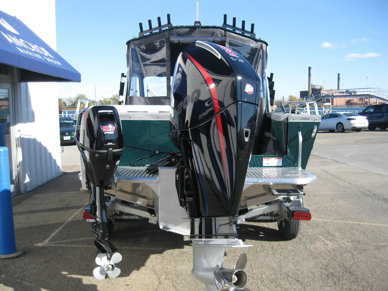 2026 Lund 200 HG Heavy Gauge. An absolute beast of a boat, built tough for tough conditions. This brand new model from Lund Heavy Gauge is powered by a Mercury 200 XL Pro XS 4 stroke, paired with a 9.9 EXLPT EFI Pro Kicker, setup with tie bar and separate controls. New Forest Green hullsides, 1/2 hardtop offers full enclosure with side and aft curtains, 8 hardtop rodholders, and 6 side mount rodholders, 6" stern rails w/ downrigger mounting pads (2), Smooth Move seat pedestals, dual automatic bilge pumps, hardtop LED flood light, 20" LED light bar, LED docking lights, and so much more. Comes paired with a tandem axle EZ Loader galvanized trailer w/ spare tire and load guides. A must see!