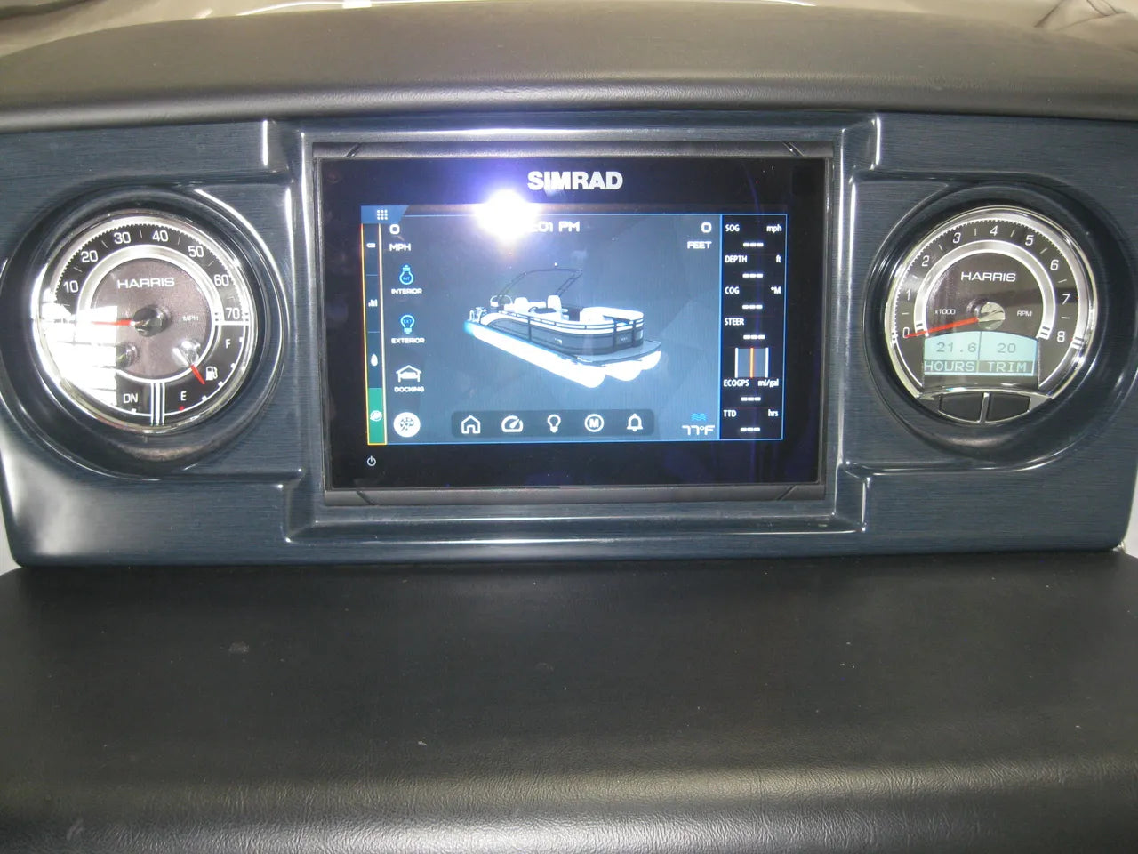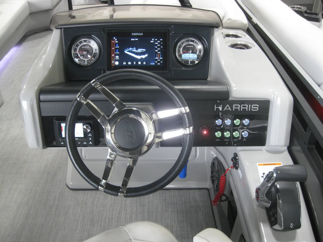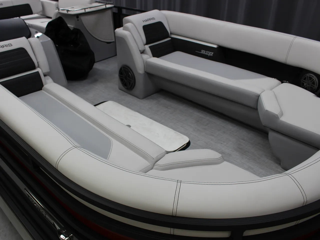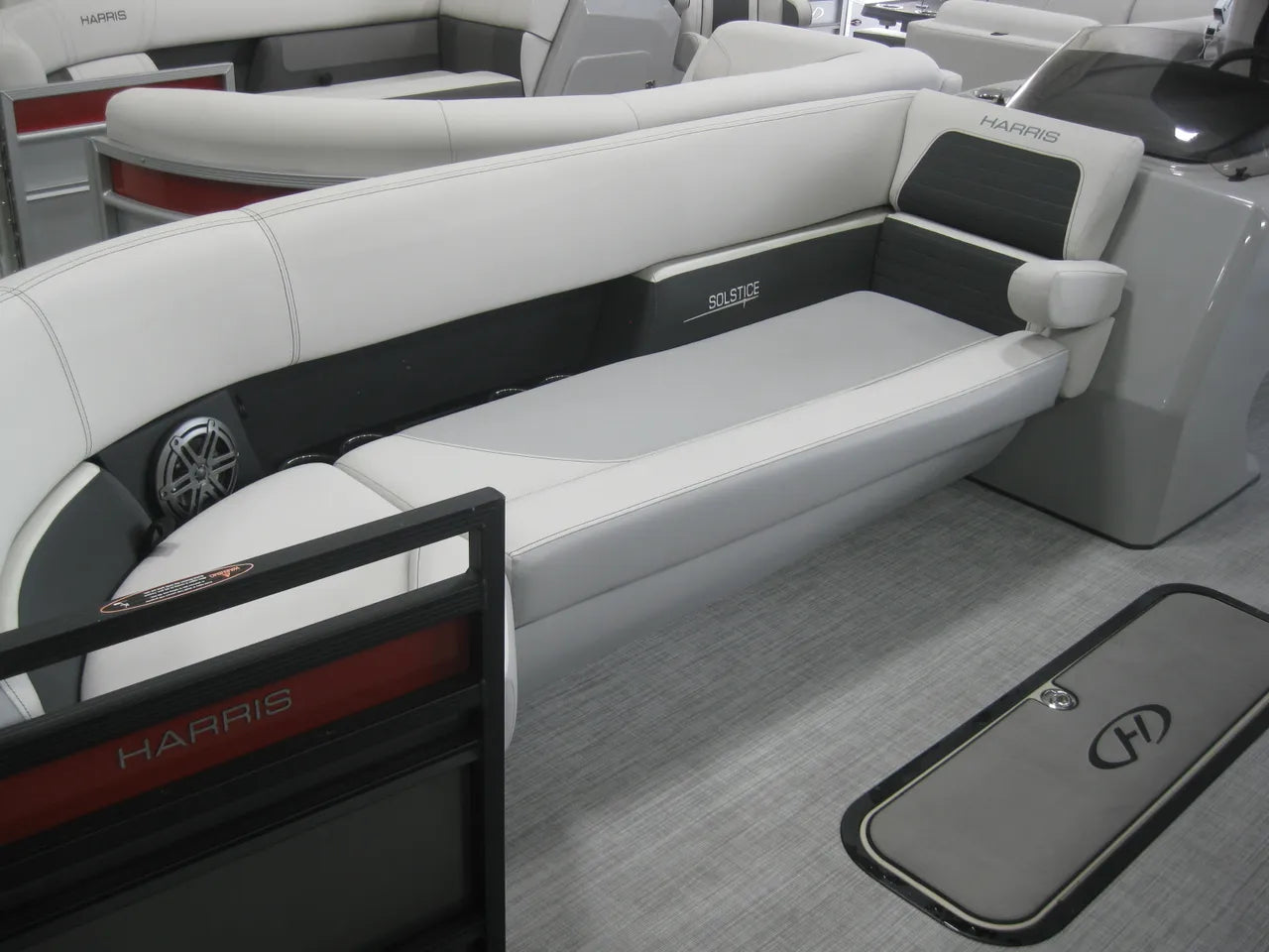 2023 Harris 250 Solstice. SLEC layout (entertainment bar) DEALER DEMO DISCOUNT / BLOWOUT SPECIAL WITH NEW FACTORY WARRANTY! Mercury 300L Verado w/ DTS and PAS (digital throttle and power assist steering) New sterling grey flat panel with blush red accent, new Ultra tower w/ bimini top, stainless steel rubrail, moonlight grey furniture, full stone grey seagrass flooring, delux tech package, JL audio sound system upgrade w/ amp & subwoofer, total lighting package, P3 tri-toon rough water package, removable ski tow pylon, Simrad GO9 GPS, seat covers, table upgrade, helm UltraLux recliner, convenience pkg, full cover, and much more!
