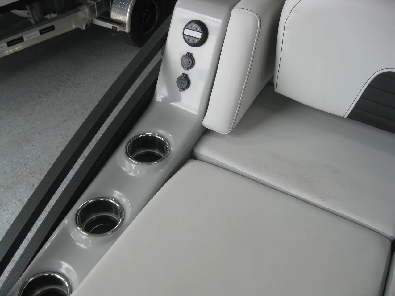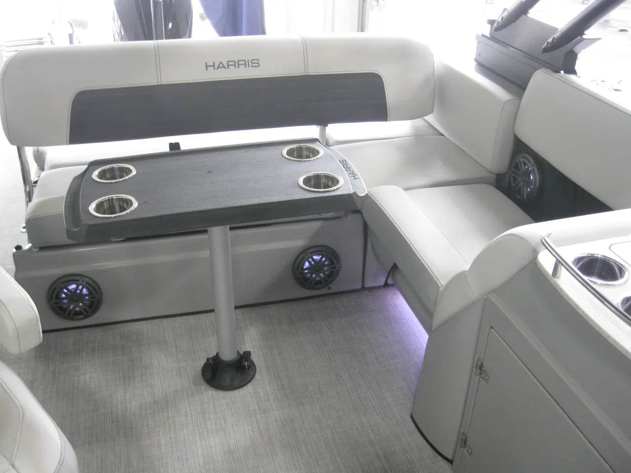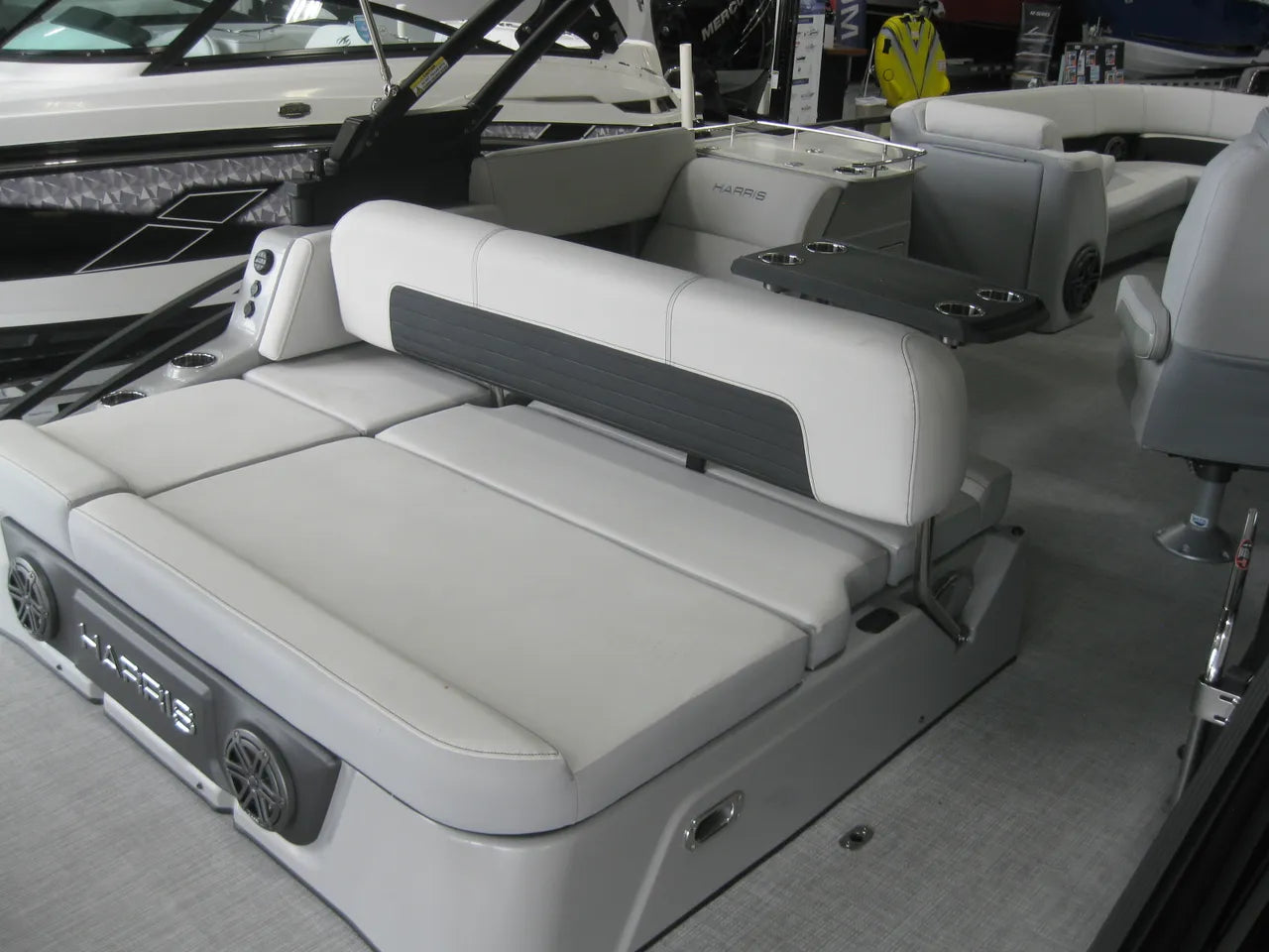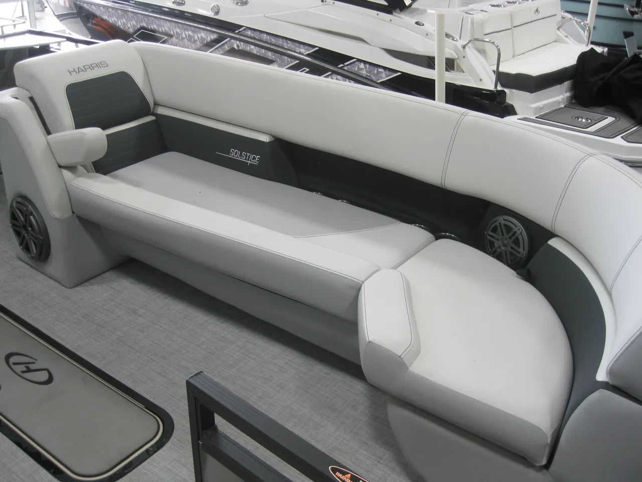 2023 Harris 250 Solstice. SLEC layout (entertainment bar) DEALER DEMO DISCOUNT / BLOWOUT SPECIAL WITH NEW FACTORY WARRANTY! Mercury 300L Verado w/ DTS and PAS (digital throttle and power assist steering) New sterling grey flat panel with blush red accent, new Ultra tower w/ bimini top, stainless steel rubrail, moonlight grey furniture, full stone grey seagrass flooring, delux tech package, JL audio sound system upgrade w/ amp & subwoofer, total lighting package, P3 tri-toon rough water package, removable ski tow pylon, Simrad GO9 GPS, seat covers, table upgrade, helm UltraLux recliner, convenience pkg, full cover, and much more!