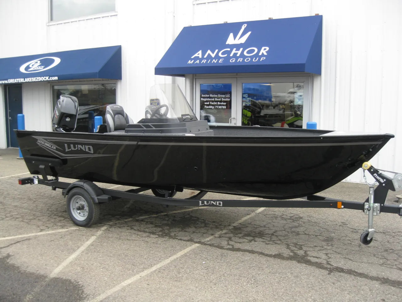 2024 Lund 1650 Angler SS. Gunmetal hullsides, powered by a 50hp Mercury 4 stroke. Full vinyl flooring, Mercury factory rigging, tilt steering wheel, helm seat slider, additional 6.5 gallon fuel tank, 2 step strap ladder, travel cover, and factory trailer w/ load guides. Freight and setup INCLUDED!!!