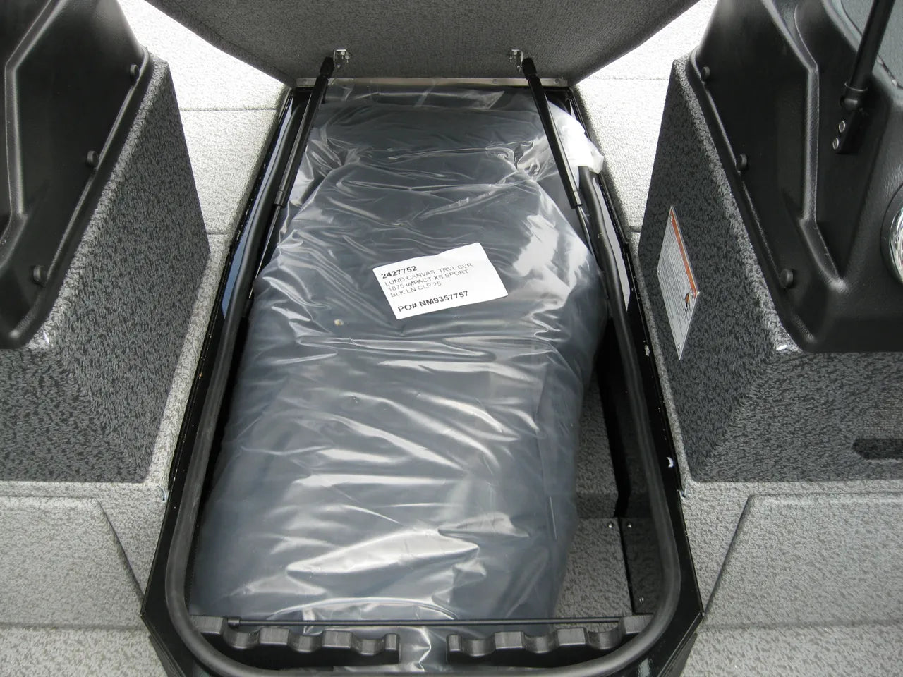 2025 Lund 1875 Impact XS Sport. Popular 18'10" fishboat powered by a Murcury 150 Pro XS 4 stroke with Hydraulic tilt steering. Full vinyl flooring, gunmetal w/ black accents, red raised logos, bow cargo nets, under console drawers port and starboard, sport top, phone charger, top hider, travel cover, and factory trailer.