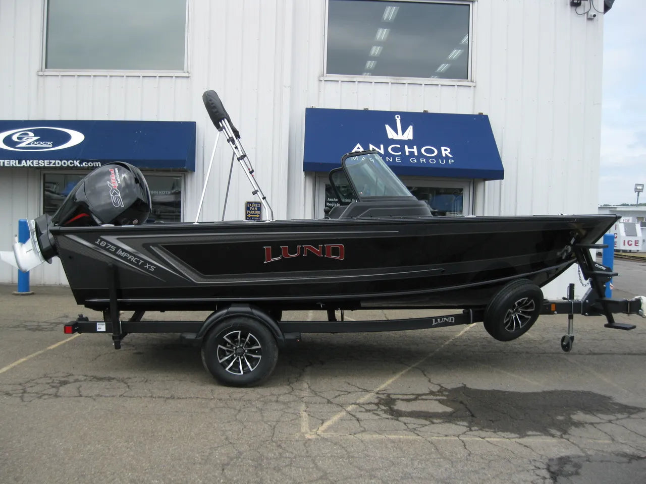 2025 Lund 1875 Impact XS Sport. LUND ULTIMATE FLASH SALE REBATE INCLUDED - SALE ENDS 9/15/2025! Popular 18'10" fishboat powered by a Murcury 150 Pro XS 4 stroke. Full vinyl flooring, gunmetal w/ black accents, red raised logos, bow cargo nets, under console drawers port and starboard, sport top, phone charger, top hider, travel cover, and factory trailer.