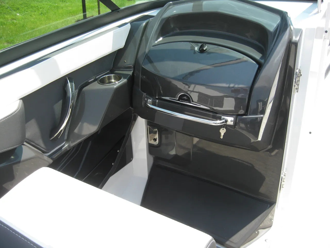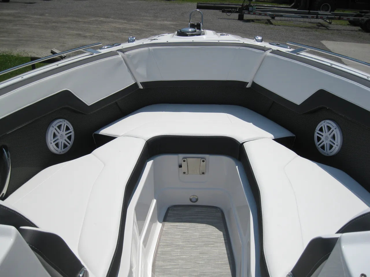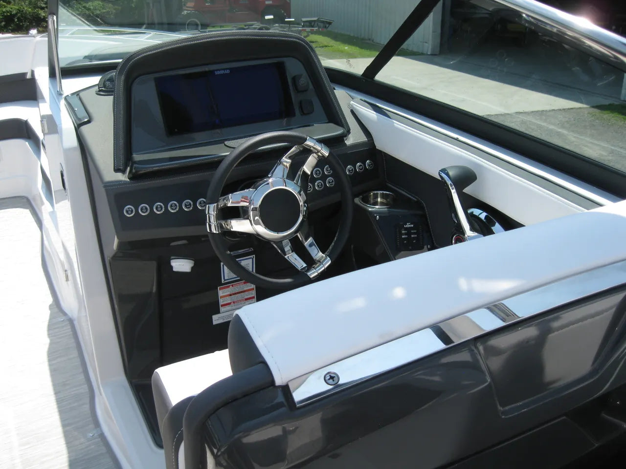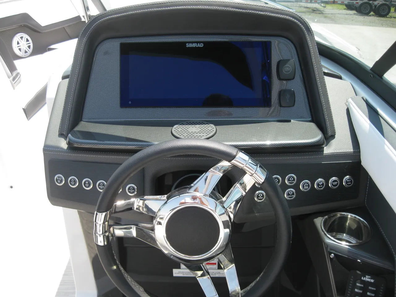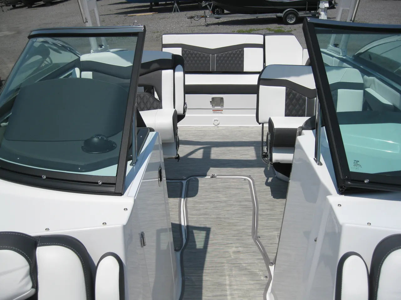 2025 Monterey 278 SS.  Very popular boat for the Great Lakes, this 278 Super Sport is powered by a Mercury 6.2L 350hp w/ DTS and paired with a Bravo III Drive.  Whisper gray hullside color, arctic bottom, collapsable white wakeboard tower w/ integrated bimini top, anthracite upholstery, anchor windlass, SeaDek swim platform inlay, cockpit table, cockpit galley w/ wetbar and sink, snap out woven flooring, pumpout head, bow & cockpit covers, and more.