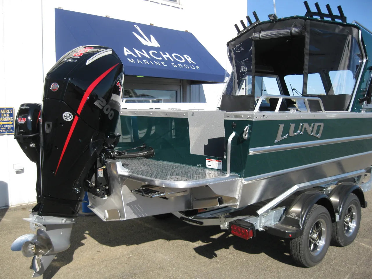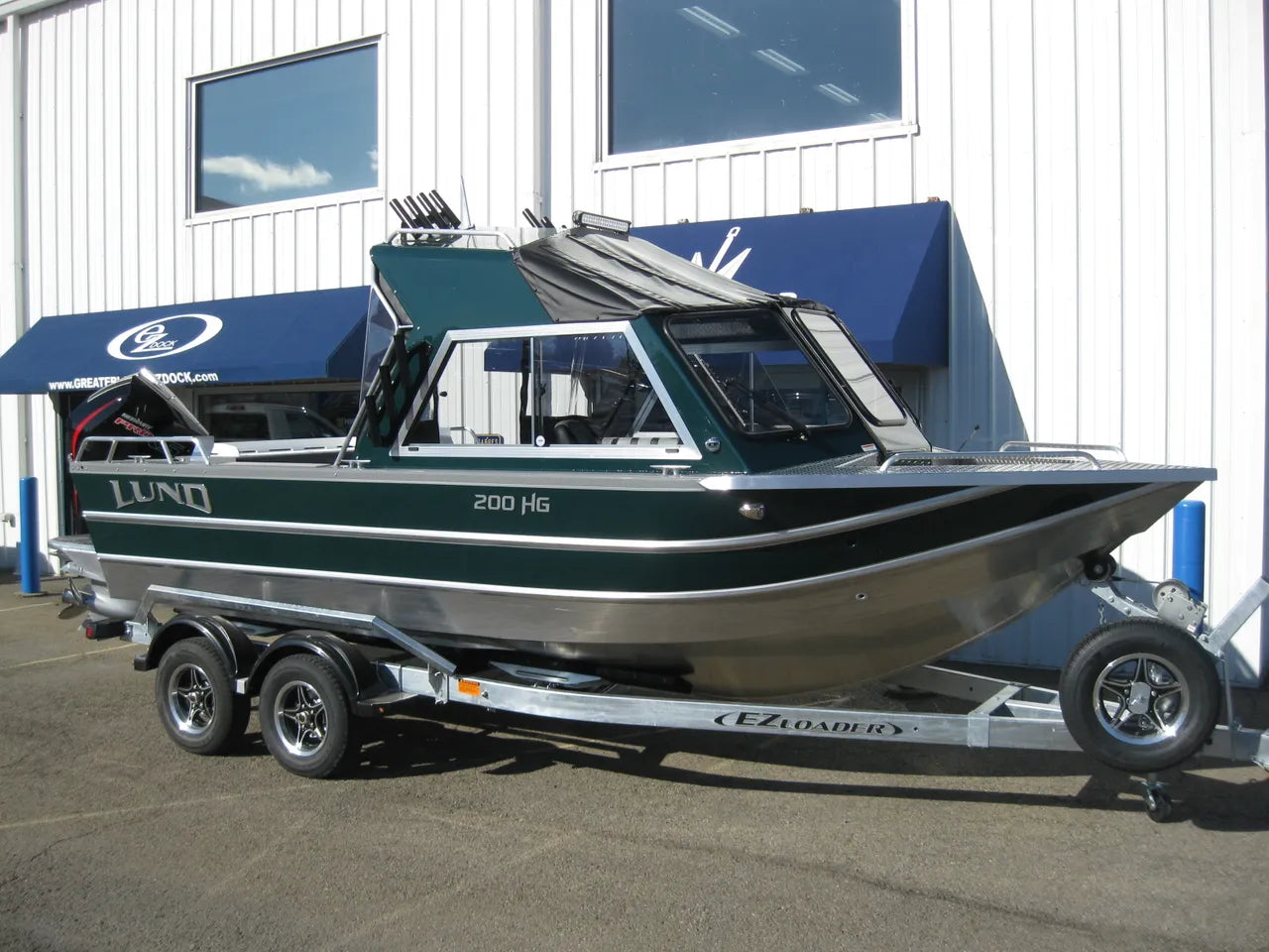 2026 Lund 200 HG Heavy Gauge. An absolute beast of a boat, built tough for tough conditions. This brand new model from Lund Heavy Gauge is powered by a Mercury 200 XL Pro XS 4 stroke, paired with a 9.9 EXLPT EFI Pro Kicker, setup with tie bar and separate controls. New Forest Green hullsides, 1/2 hardtop offers full enclosure with side and aft curtains, 8 hardtop rodholders, and 6 side mount rodholders, 6" stern rails w/ downrigger mounting pads (2), Smooth Move seat pedestals, dual automatic bilge pumps, hardtop LED flood light, 20" LED light bar, LED docking lights, and so much more. Comes paired with a tandem axle EZ Loader galvanized trailer w/ spare tire and load guides. A must see!