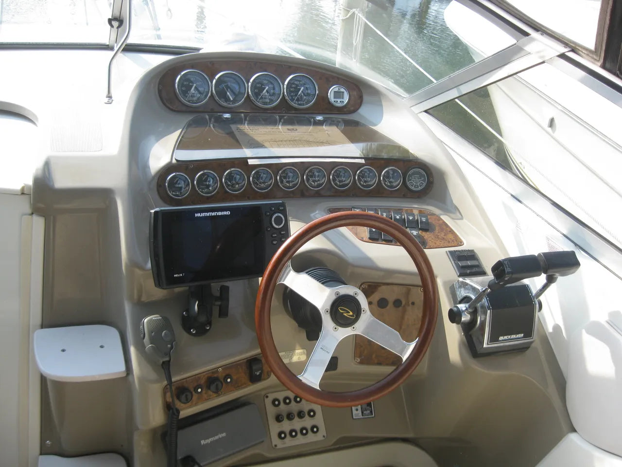 1998 Regal 2760 Commodore. Very nice / well cared for freshwater express cruiser. Powered by twin Mercruiser 4.3L V6 I/O's at 380 total hp. Radar arch w/ integrated bimini and camper canvas enclosure, new snap out woven cockpit flooring, cockpit galley w/ wetbar, updated Humminbird Helix 7 GPS unit, VHF radio, full kitchenette w/ fridge, single burner stove, sink, and microwave, new air conditioning unit, marine head, flat screen TV, and more. This boat makes the perfect overnighter!