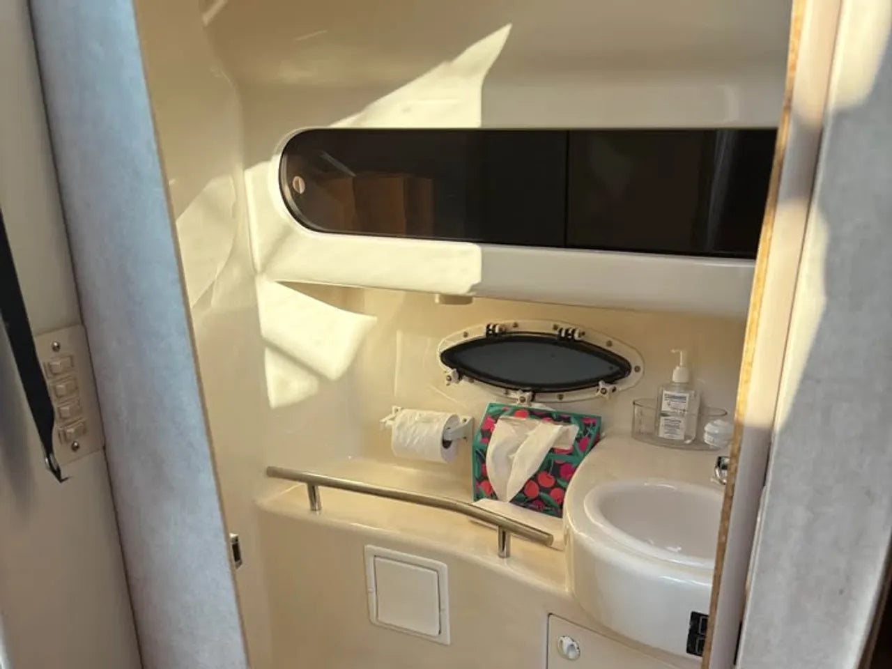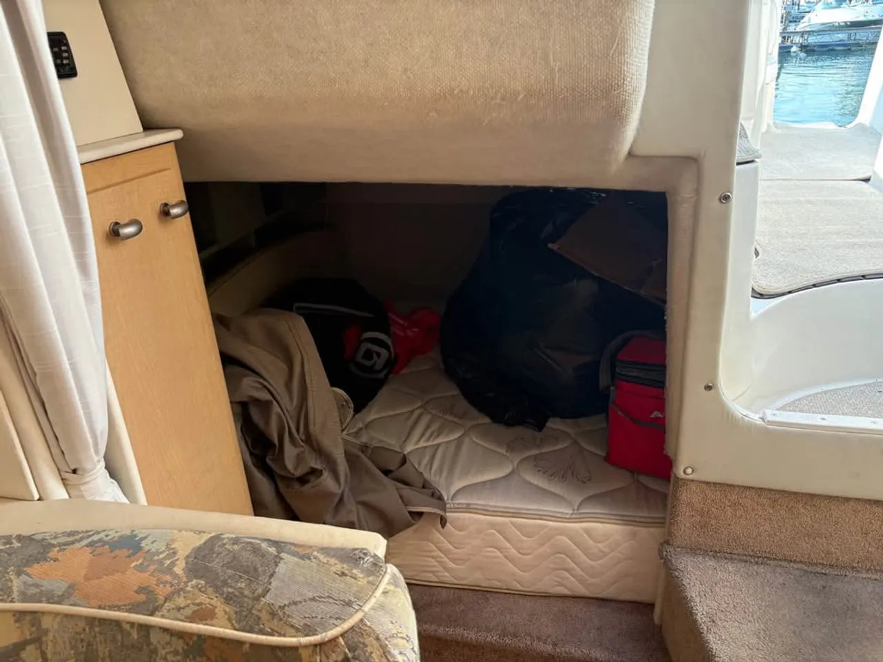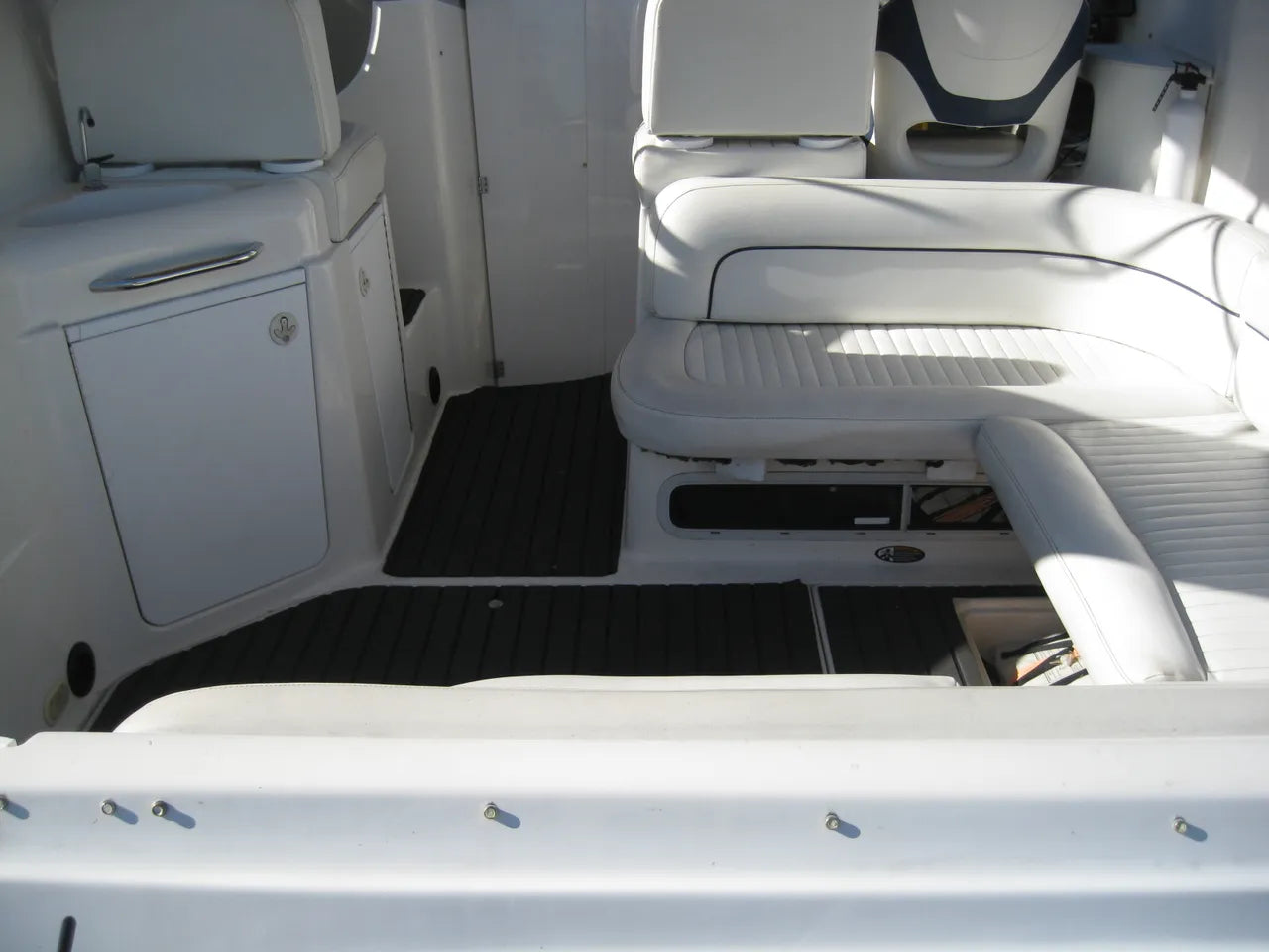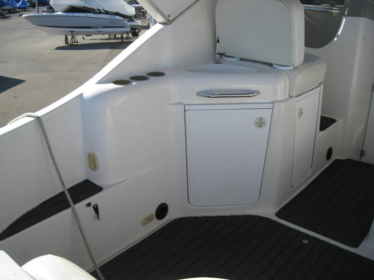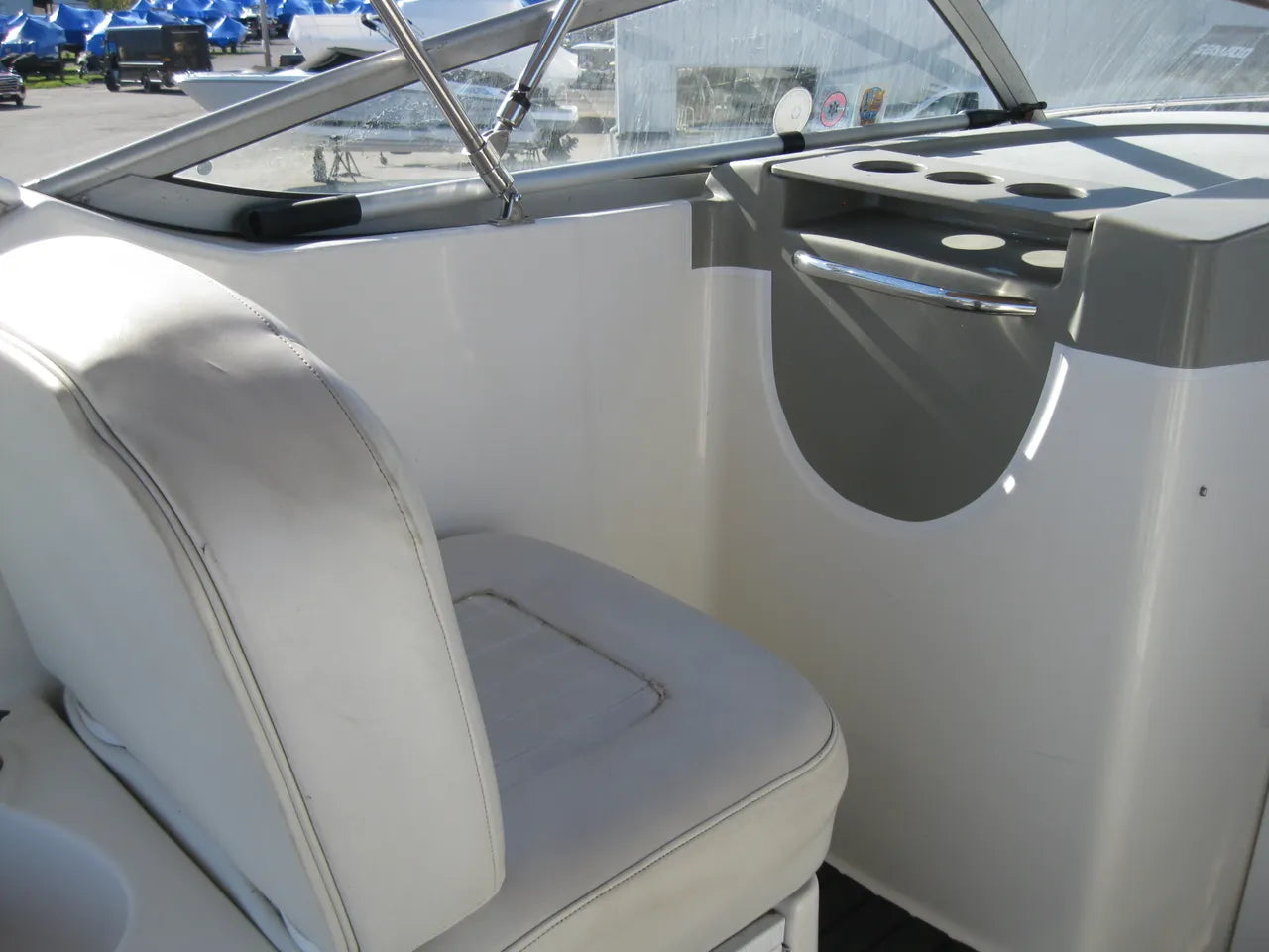 2000 Bayliner 3055 Ciera. 30' twin engine express cruiser, powered by twin Mercuiser 5.0L v8's. Large extended swim platform leads to a port side entry to the cockpit, with fresh water sink, "L" group seating w/ cockpit table, marine mat flooring, new helm captains chair w/ flip up bolster, trim tabs, depth finder, VHF radio, air conditioning w/ reverse cycle heat, kitchenette w/ stovetop, microwave, fridge and sink, anchor windlass, marine head w/ holding tank, and new camper top canvas w/ isinglass.