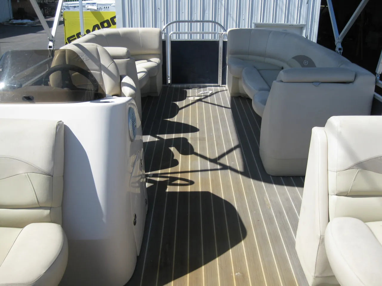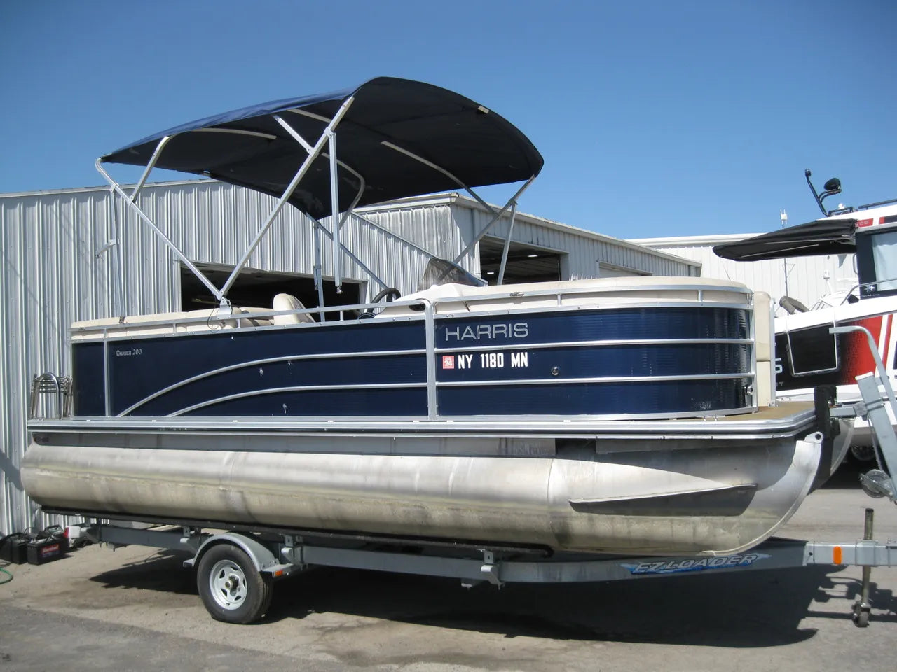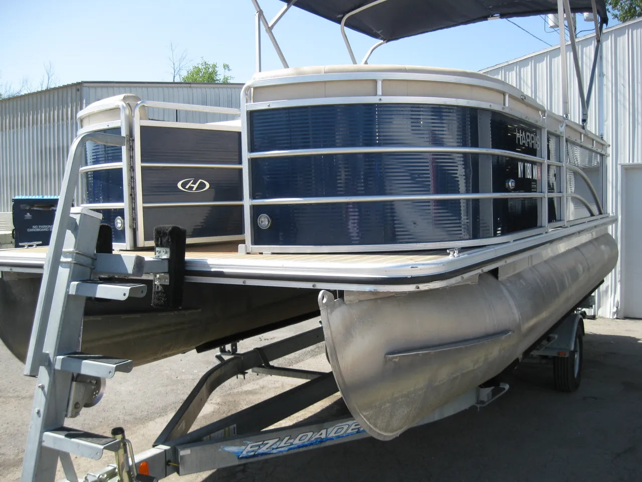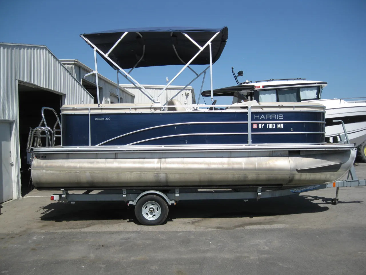2016 Harris 200 CX.  21' pontoon boat, powered by a Mercury 60hp 4 stroke.  CW center walkthrough layout, upgraded flooring (no carpet) helm reclining captains chair, stereo, bimini top, stainless steel ski tow bar and comes with a trailer.