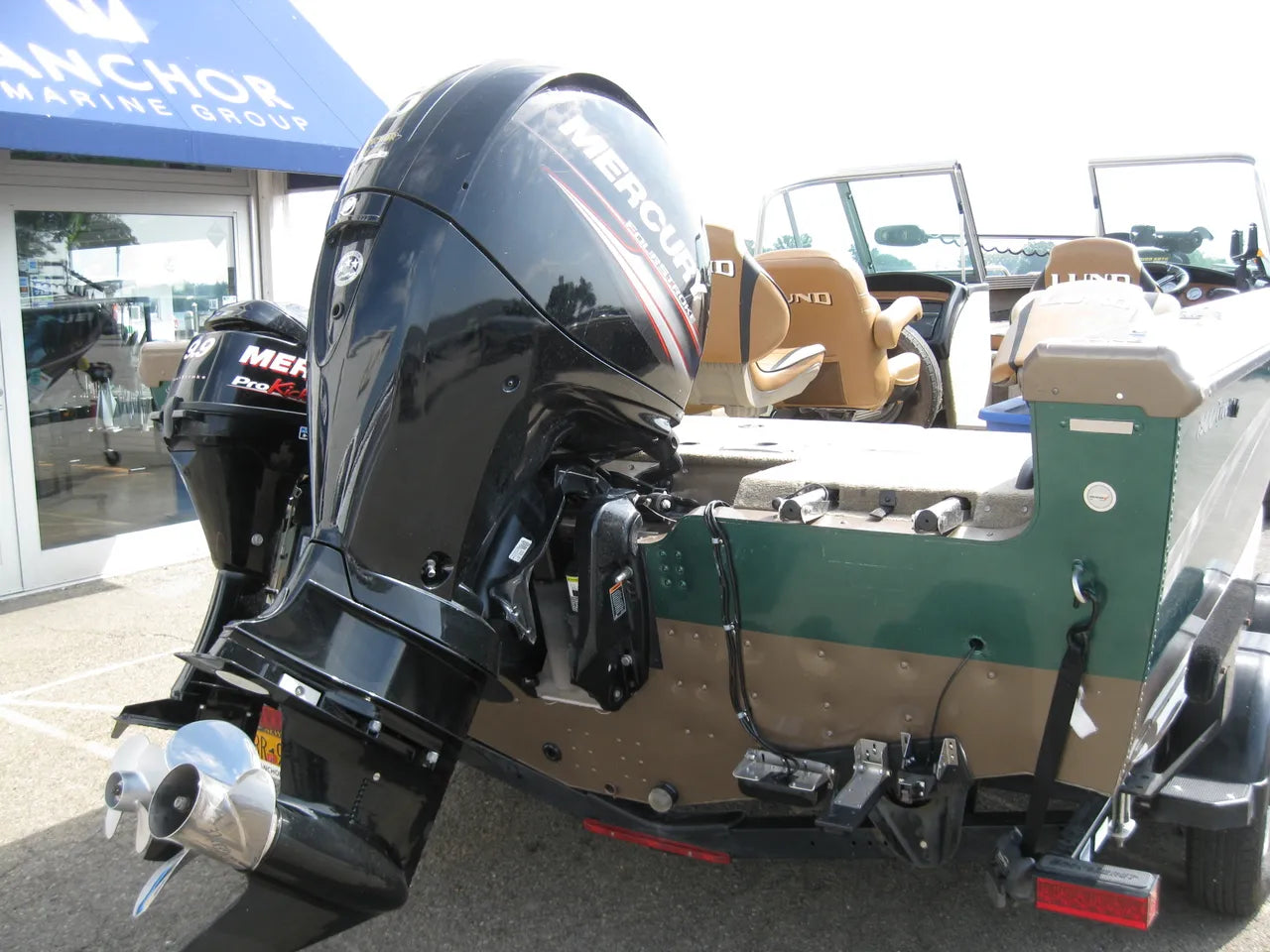 2016 Lund 1900 Tyee Sport. Turn key fishing rig / 2 owner boat purchased from Anchor Marine. Rare hunter green / tan exterior with upgraded interior. Full vinyl flooring, Mercury 150 efi 4 stroke with 237 hours (scanned) of runtime, and a 9.9 Tiller Pro Kicker w/ Trollmaster. Helm captians chair upgrade, pro ride seats, removable bow cushion set, Fishhawk, PX 30 Panoptics, Minnkota 80# 24v Terrova iPilot, battery charger, cover, tandem axle trailer w/ spare tire and load guides.