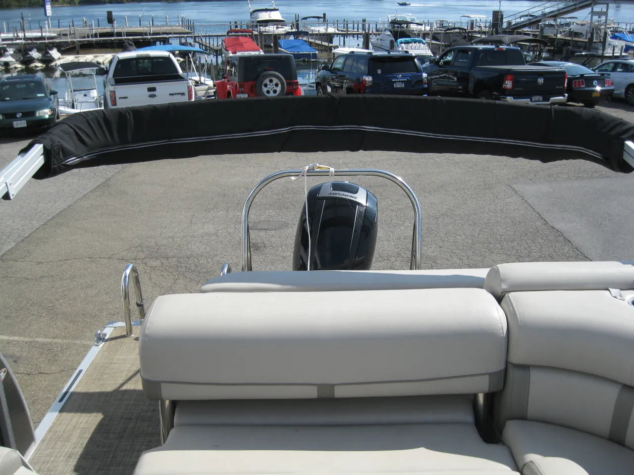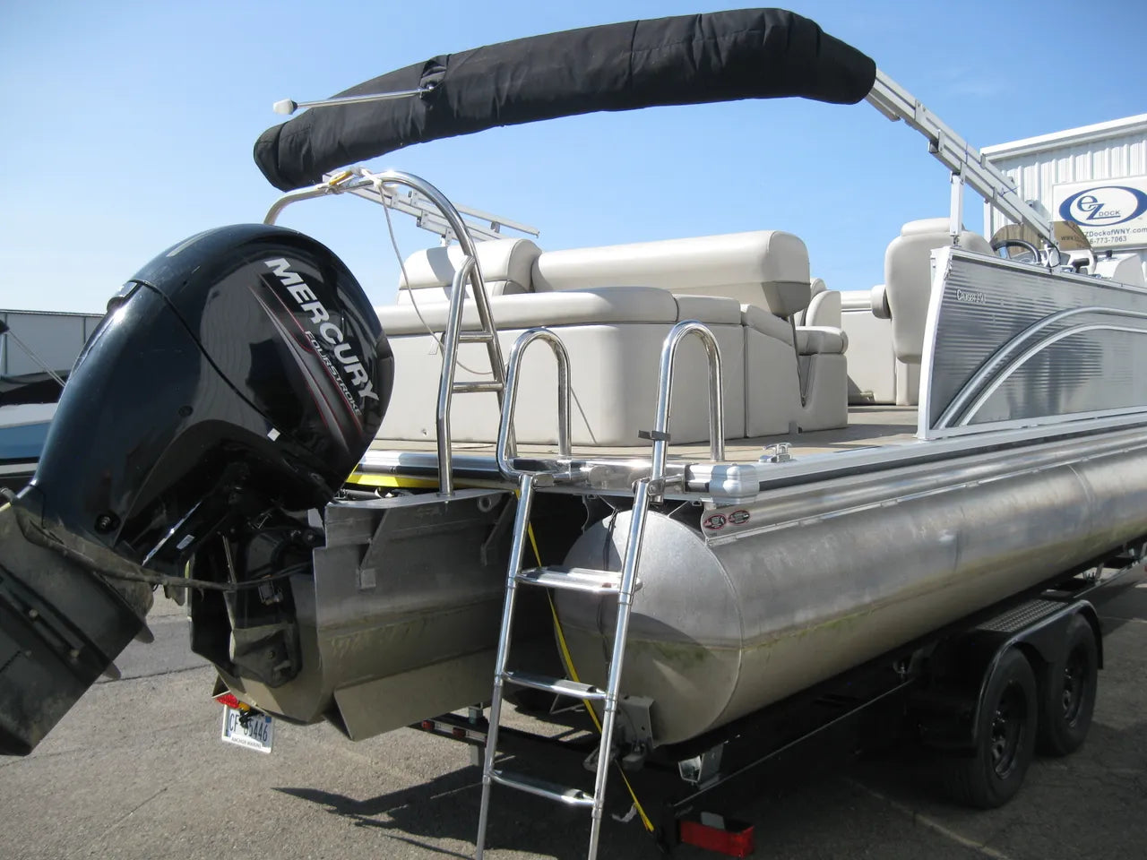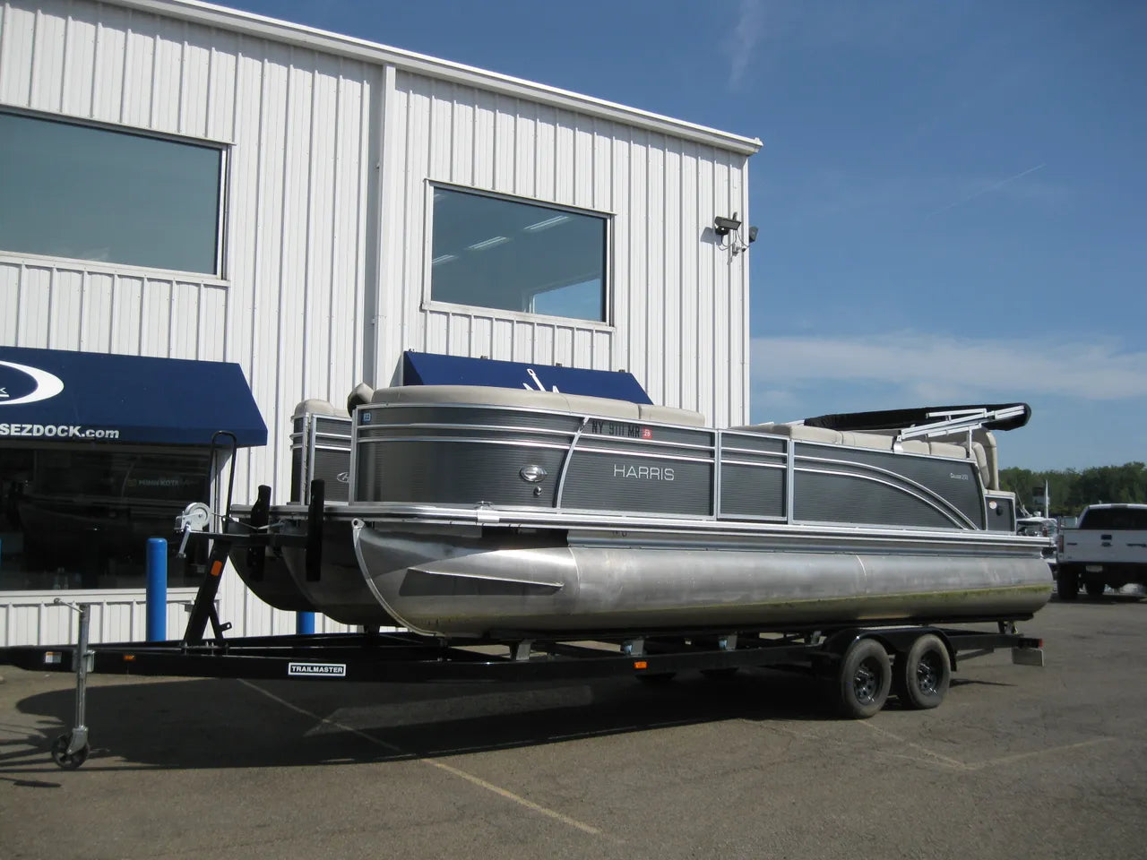2019 Harris 250 Cruiser Tri-Toon. Very nice 25' tri-toon, powered by a Mercury 150hp 4 stroke with only 124 hours, stainless steel prop and hydraulic steering. Popular SL (flip lounger) layout, woven flooring (no carpet) performance level 2 rough water / tri-toon package, 12' oversized bimini top, select trim level, stainless steel 4 step ladder, helm lux recliner chair, depth finder, Fusion Bluetooth stereo, in floor ski locker storage upgrade, stainless steel flip up cleats, quick release fenders, table upgrade, full snapless cover, both bow and stern SideShift thrusters make docking a breeze - and comes with a tandem axle trailer.
