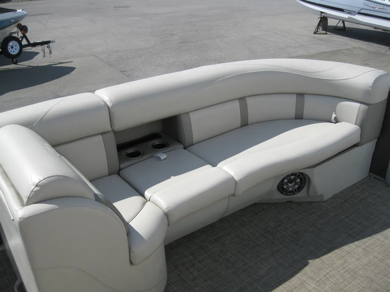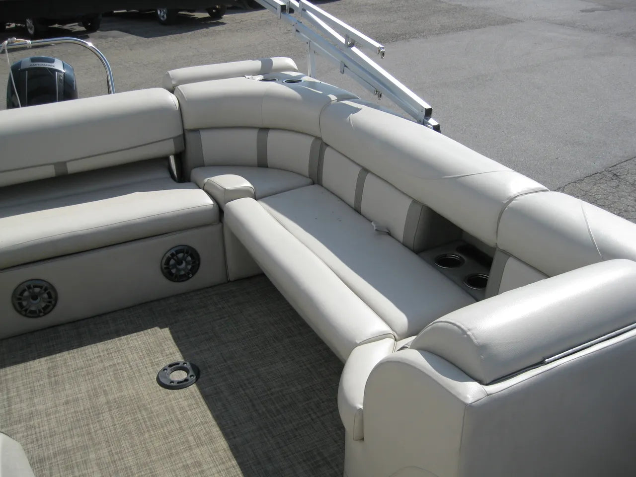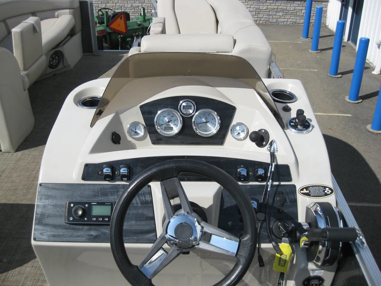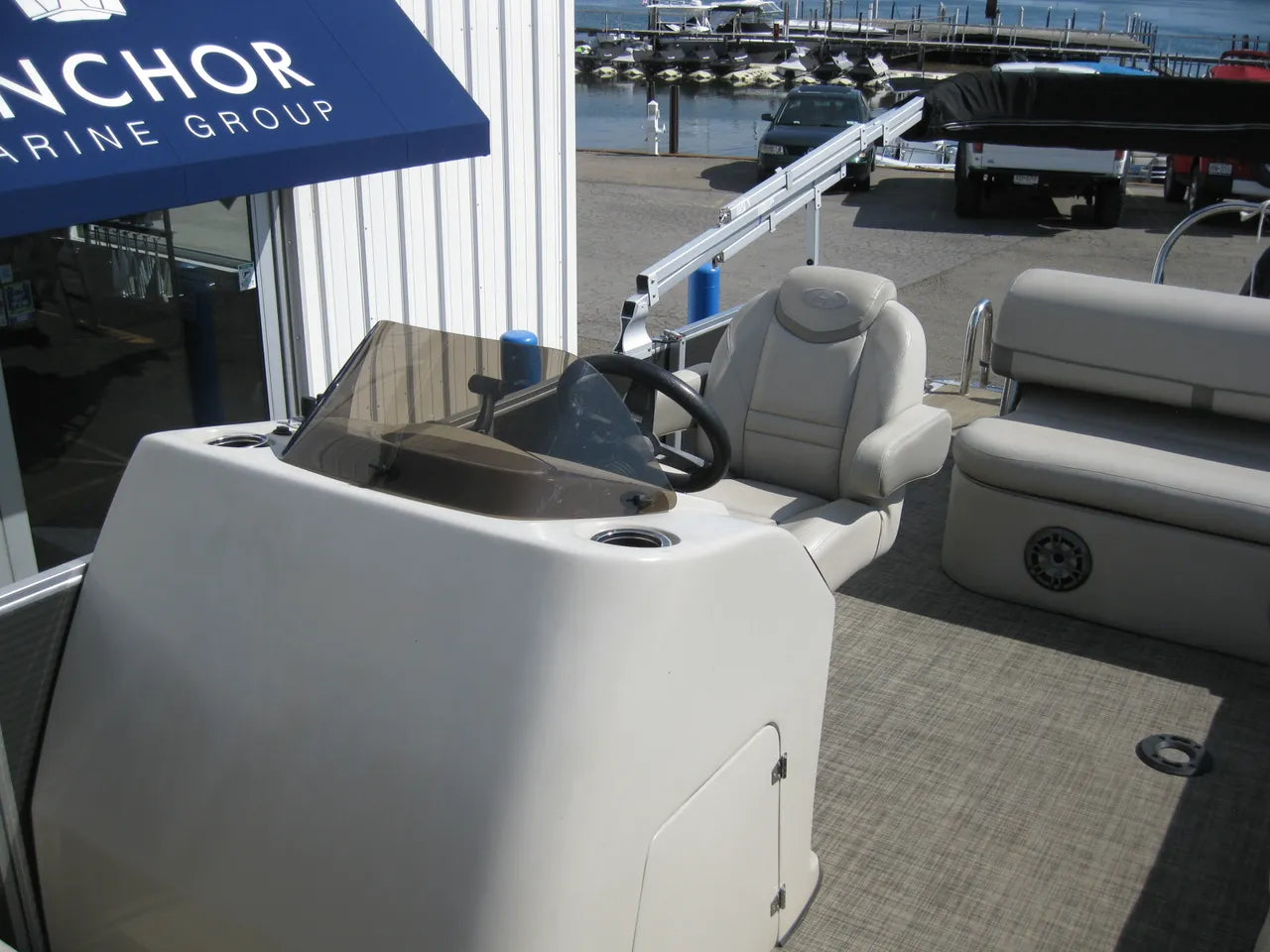 2019 Harris 250 Cruiser Tri-Toon. Very nice 25' tri-toon, powered by a Mercury 150hp 4 stroke with only 124 hours, stainless steel prop and hydraulic steering. Popular SL (flip lounger) layout, woven flooring (no carpet) performance level 2 rough water / tri-toon package, 12' oversized bimini top, select trim level, stainless steel 4 step ladder, helm lux recliner chair, depth finder, Fusion Bluetooth stereo, in floor ski locker storage upgrade, stainless steel flip up cleats, quick release fenders, table upgrade, full snapless cover, both bow and stern SideShift thrusters make docking a breeze - and comes with a tandem axle trailer.