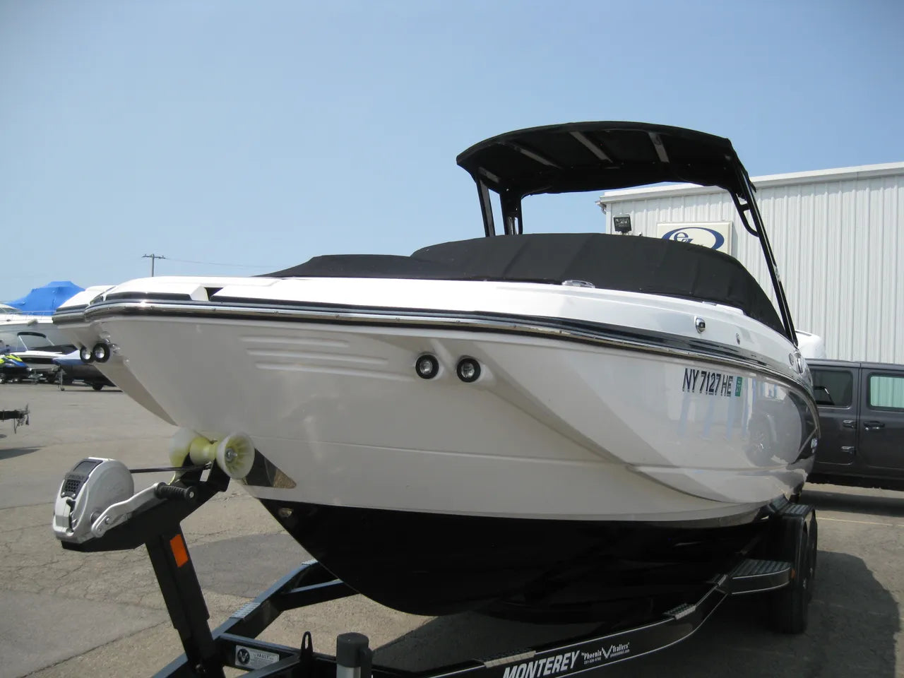 2021 Monterey M4. SEPTEMBER PRICE REDUCTION!! Very nice one owner boat, nicely equipped with features. Plenty of power in the Mercury 6.2L 300hp V8 w/ Bravo III drive and DTS (digital throttle and shift) w/ only 50hrs of freshwater runtime. Arctic hullside w/ upgraded onyx hull bottom. Portside arena flip flot seating, grey Seadek cockpit and swim platform inlay, premium stereo upgrade w/ amp and subwoofer, battery charger, wakeboard tower w/ integrated bimini top, stern mounted stereo remote, head w/ pumpout deck fitting, bow & cockpit covers, and comes with a custom matched Phoenix trailer.